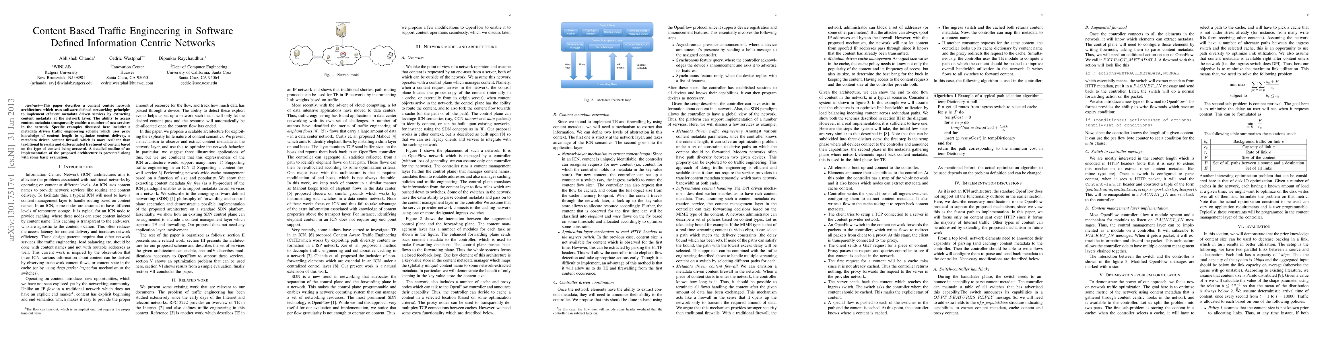 This paper proposes a content centric network architecture leveraging software defined networking for metadata-driven services, including optimized traffic engineering and resilient content firewalls. The implementation details and initial evaluation of the proposed architecture are also discussed.