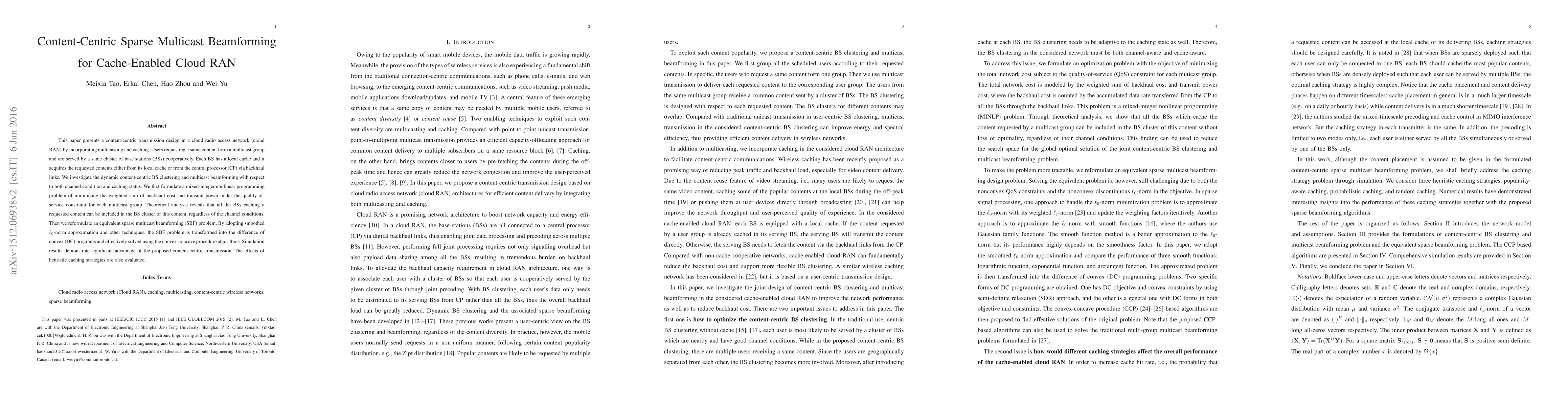 This paper proposes a content-centric sparse multicast beamforming approach in cache-enabled cloud RAN, optimizing both backhaul cost and transmit power through dynamic BS clustering and multicast beamforming. The method effectively solves the formulated mixed-integer nonlinear programming problem using convex-concave procedure algorithms, demonstrating significant performance benefits.