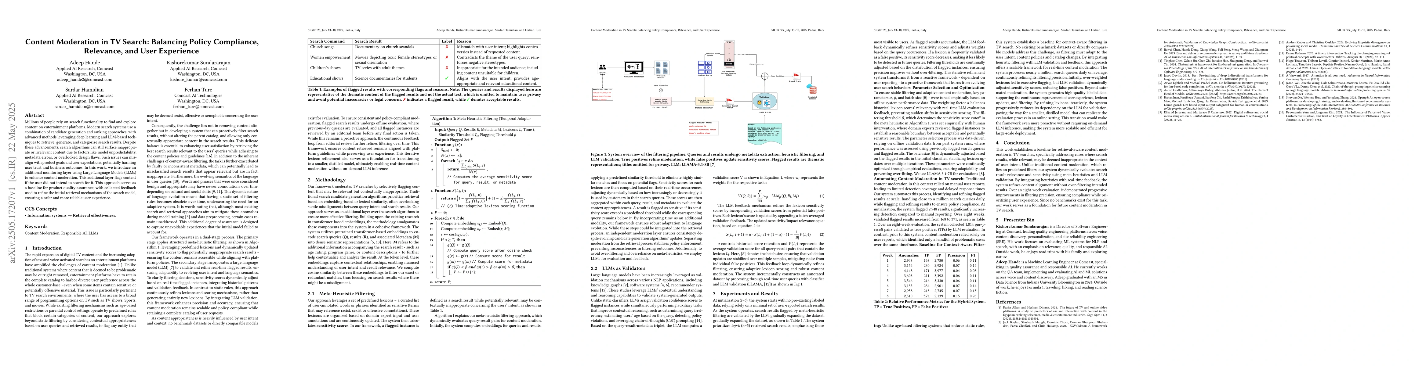 A new approach using Large Language Models (LLMs) is introduced to enhance content moderation in TV search functionality, aiming to balance policy compliance, relevance, and user experience.