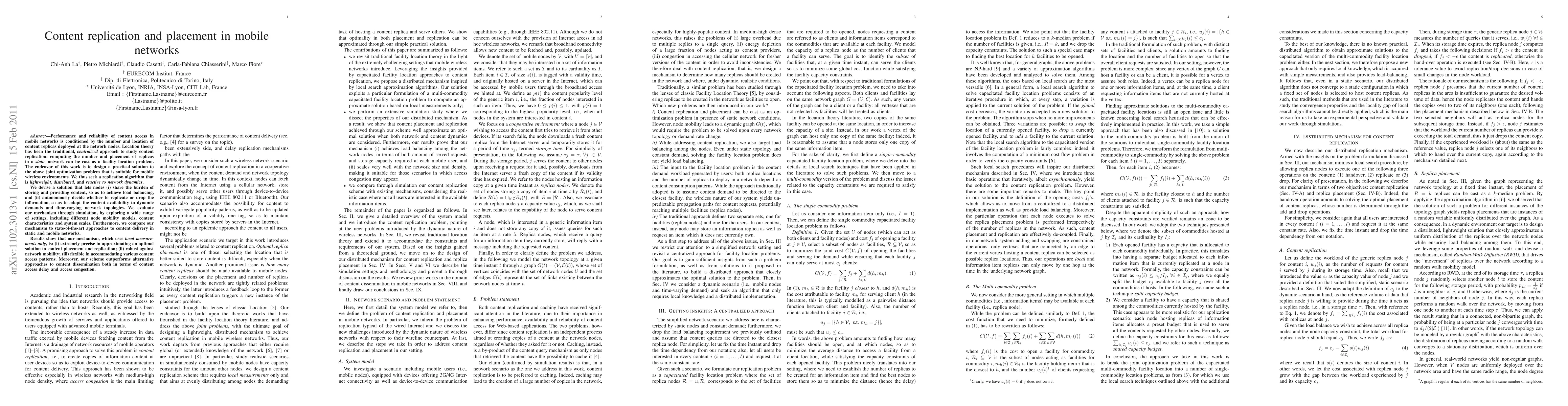 This paper proposes a lightweight, distributed, and reactive algorithm for content replication and placement in mobile networks, achieving load balancing and adapting to dynamic demands and network topologies. Simulation results show the algorithm's precision in approximating optimal solutions, robustness against mobility, and flexibility in various access patterns, outperforming existing approaches in access delay and congestion.