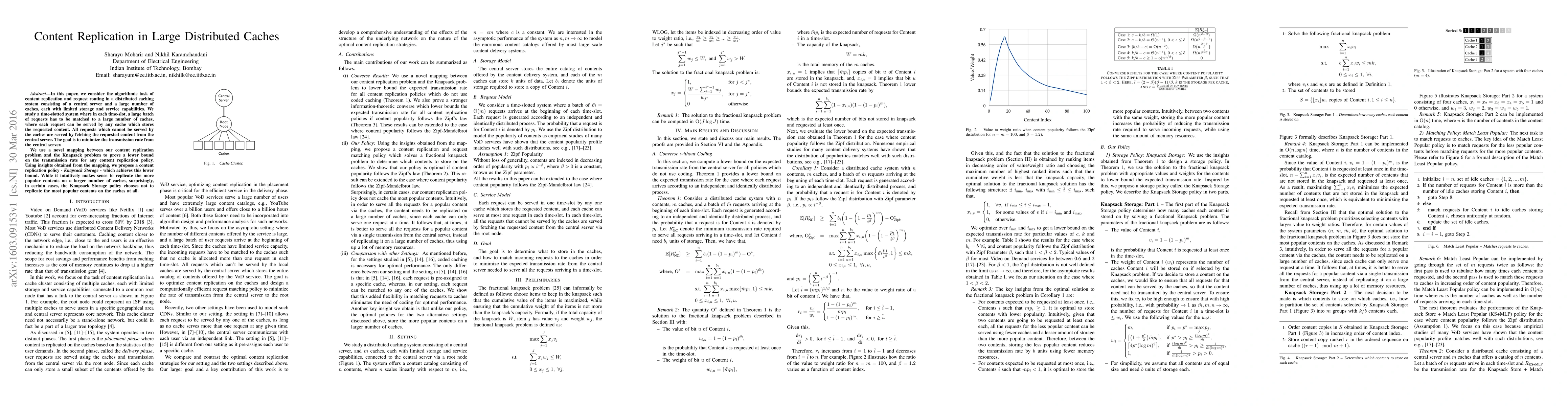 This paper explores content replication and request routing in distributed caching systems to minimize central server transmission. It proposes a Knapsack Storage policy, inspired by the Knapsack problem, which achieves a lower bound on transmission rates, defying the intuition that popular contents should be widely replicated.