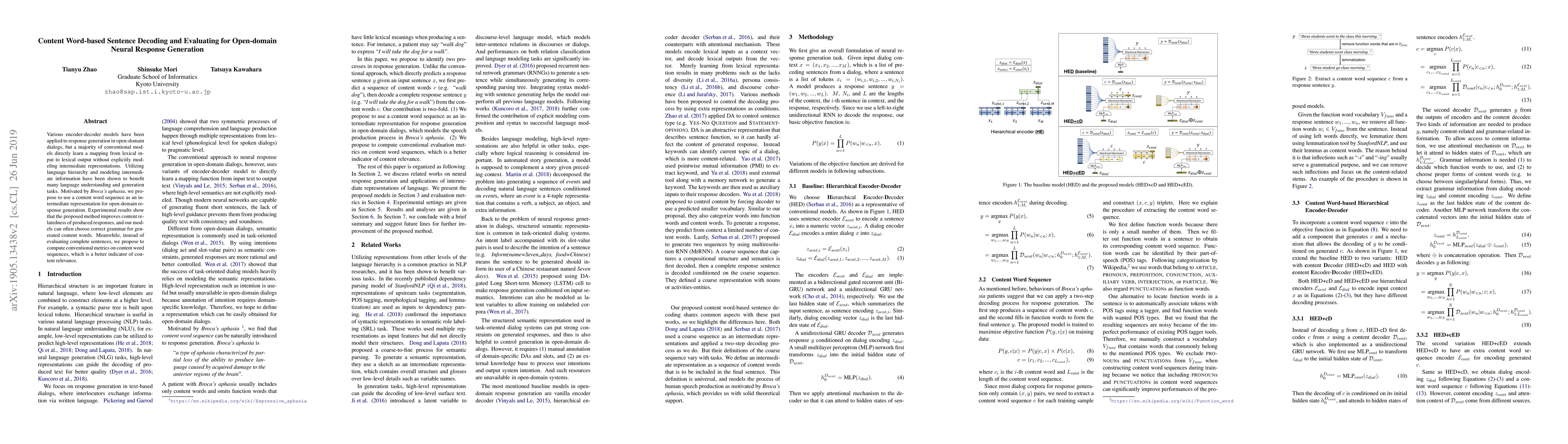 A new method for open-domain response generation uses content word sequences as intermediate representations, improving content-relatedness and grammar choice of generated responses.