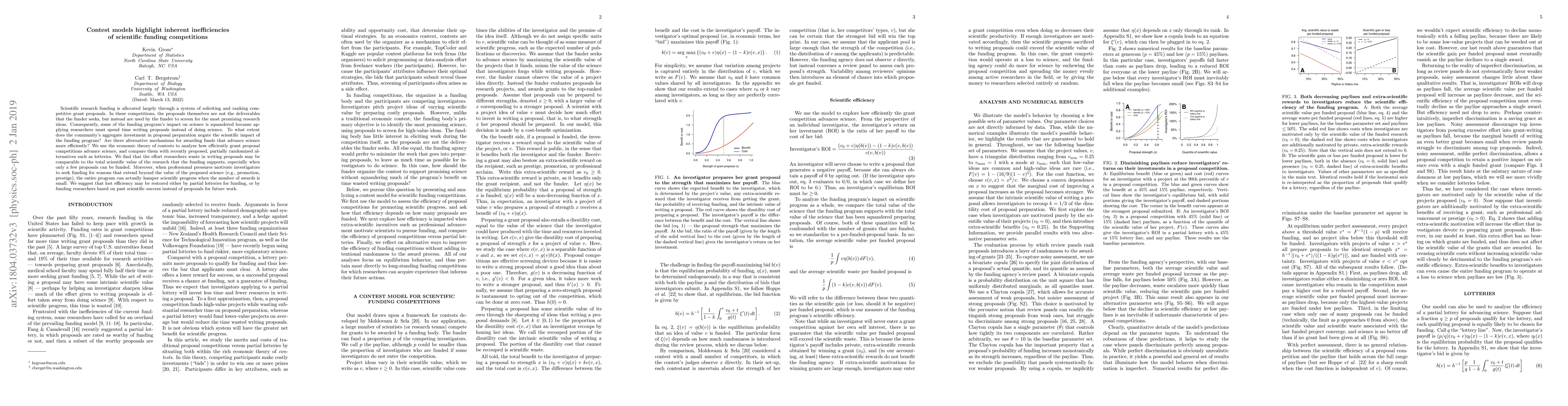 This paper uses contest theory to analyze the inefficiencies of competitive grant proposal systems in scientific funding, finding that the time spent on proposal preparation can negate the scientific impact of the funding. It suggests alternative funding mechanisms like partial lotteries or funding based on past success to enhance efficiency.