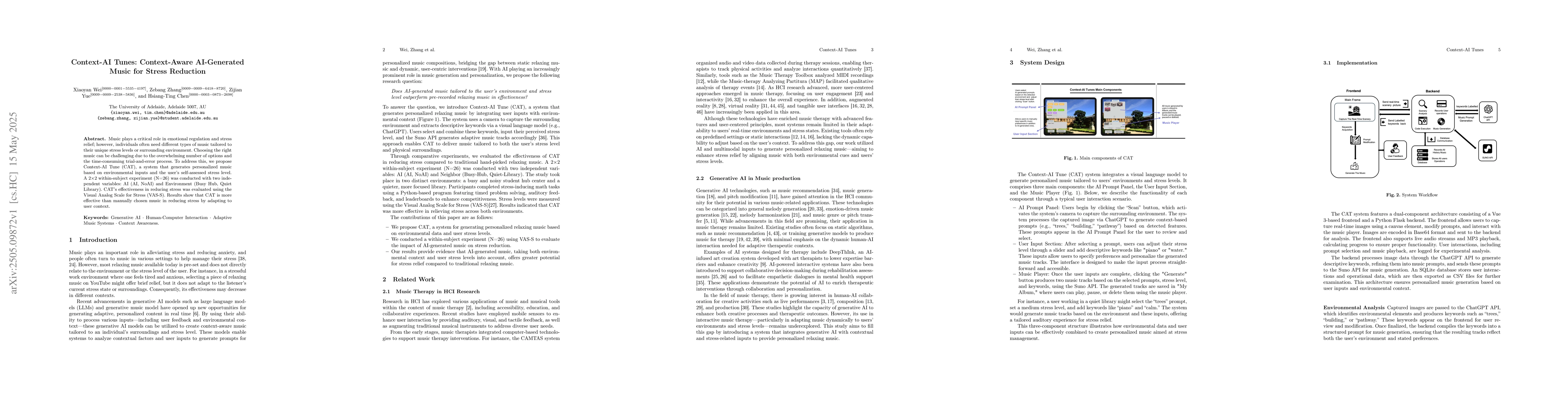Context-AI Tune (CAT), a system that generates personalized music based on environmental inputs and user-assessed stress levels.