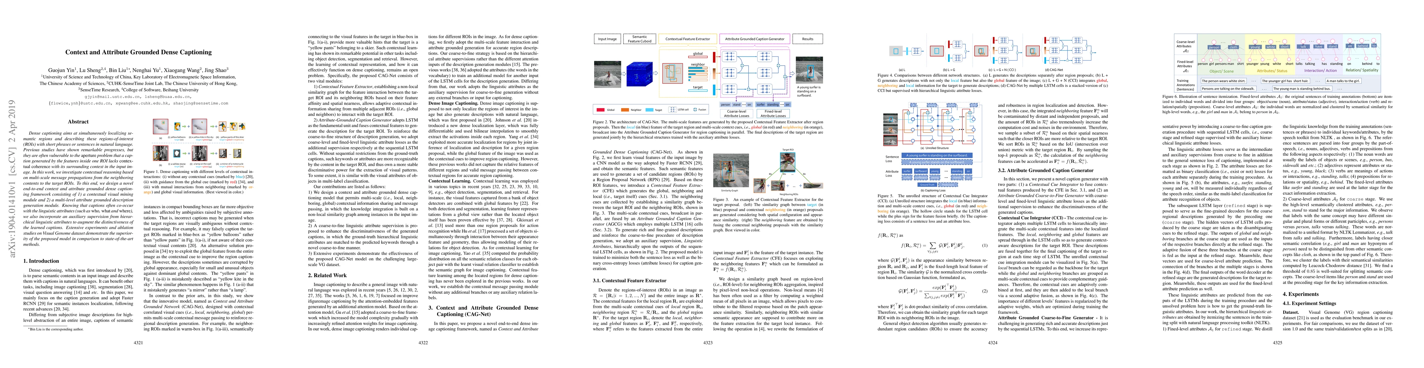 This paper proposes a novel dense captioning framework that enhances contextual reasoning through multi-scale message propagation and incorporates hierarchical linguistic attributes to generate more coherent and distinctive captions. Experiments show the model outperforms existing methods on the Visual Genome dataset.