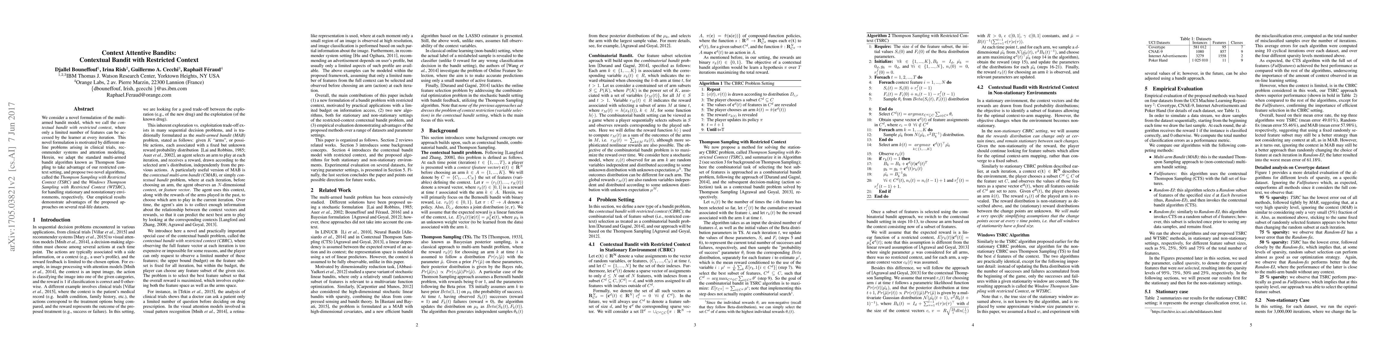 This paper introduces a contextual bandit model with restricted context, where only a limited number of features are accessible at each iteration. It proposes two new algorithms, TSRC and WTSRC, adapted from Thompson Sampling to handle stationary and nonstationary environments, respectively, and shows their effectiveness on real-life datasets.