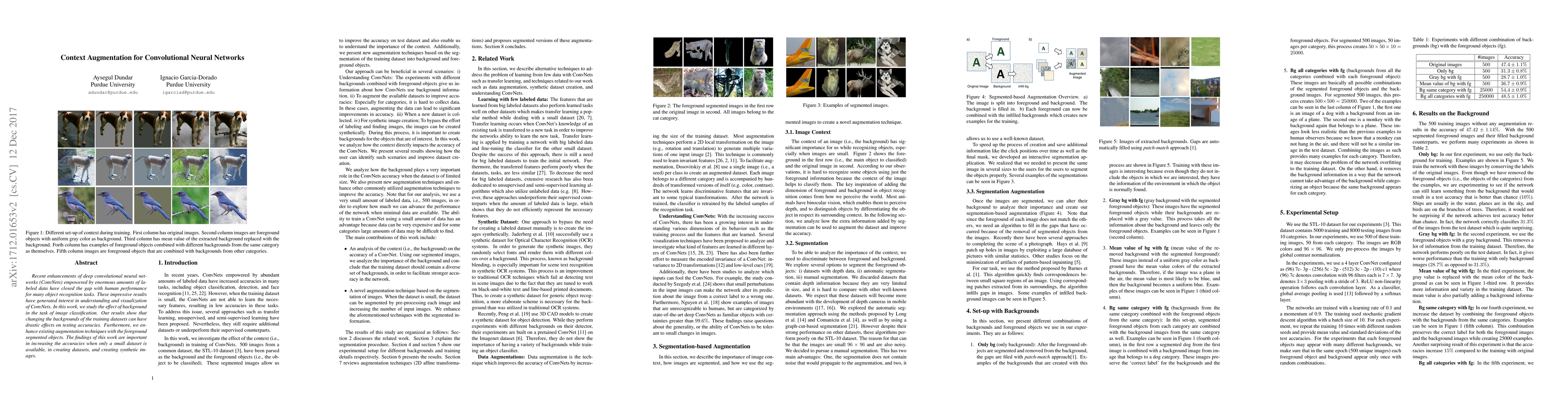 Recent enhancements of deep convolutional neural networks (ConvNets) empowered by enormous amounts of labeled data have closed the gap with human performance for many object recognition tasks. These impressive results have generated interest in understanding and visualization of ConvNets. In this work, we study the effect of background in the task of image classification. Our results show that changing the backgrounds of the training datasets can have drastic effects on testing accuracies. Furthermore, we enhance existing augmentation techniques with the foreground segmented objects. The findings of this work are important in increasing the accuracies when only a small dataset is available, in creating datasets, and creating synthetic images.