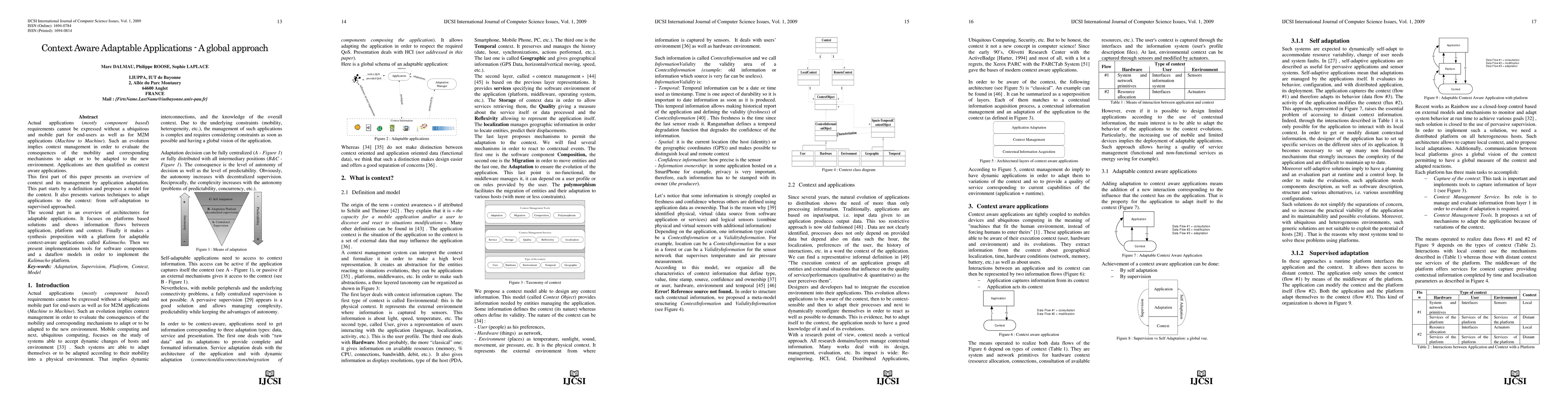 This paper explores context management for adaptable applications, defining context and proposing a model for it. It reviews techniques for application adaptation and presents an architecture for adaptable applications, culminating in the Kalimucho platform for context-aware applications.