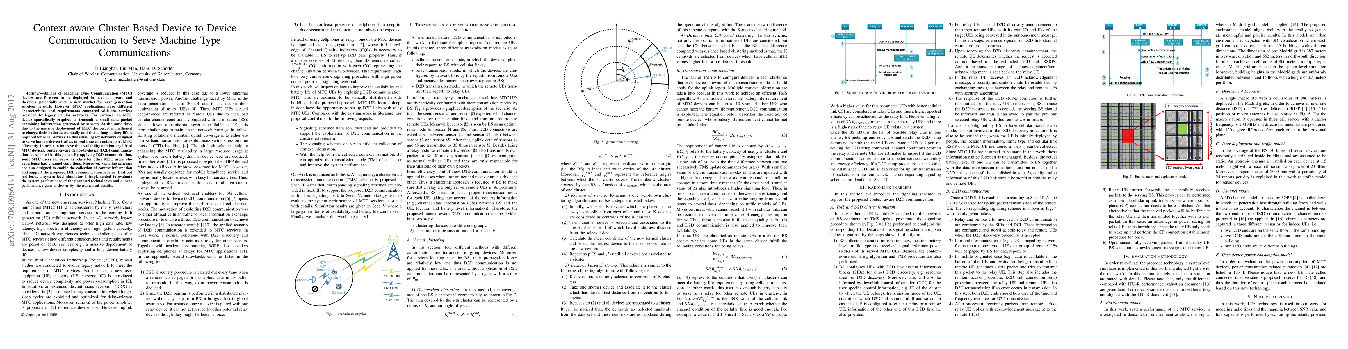 Billions of Machine Type Communication (MTC) devices are foreseen to be deployed in next ten years and therefore potentially open a new market for next generation wireless network. However, MTC applications have different characteristics and requirements compared with the services provided by legacy cellular networks. For instance, an MTC device sporadically requires to transmit a small data packet containing information generated by sensors. At the same time, due to the massive deployment of MTC devices, it is inefficient to charge their batteries manually and thus a long battery life is required for MTC devices. In this sense, legacy networks designed to serve human-driven traffics in real time can not support MTC efficiently. In order to improve the availability and battery life of MTC devices, context-aware device-to-device (D2D) communication is exploited in this paper. By applying D2D communication, some MTC users can serve as relays for other MTC users who experience bad channel conditions. Moreover, signaling schemes are also designed to enable the collection of context information and support the proposed D2D communication scheme. Last but not least, a system level simulator is implemented to evaluate the system performance of the proposed technologies and a large performance gain is shown by the numerical results.