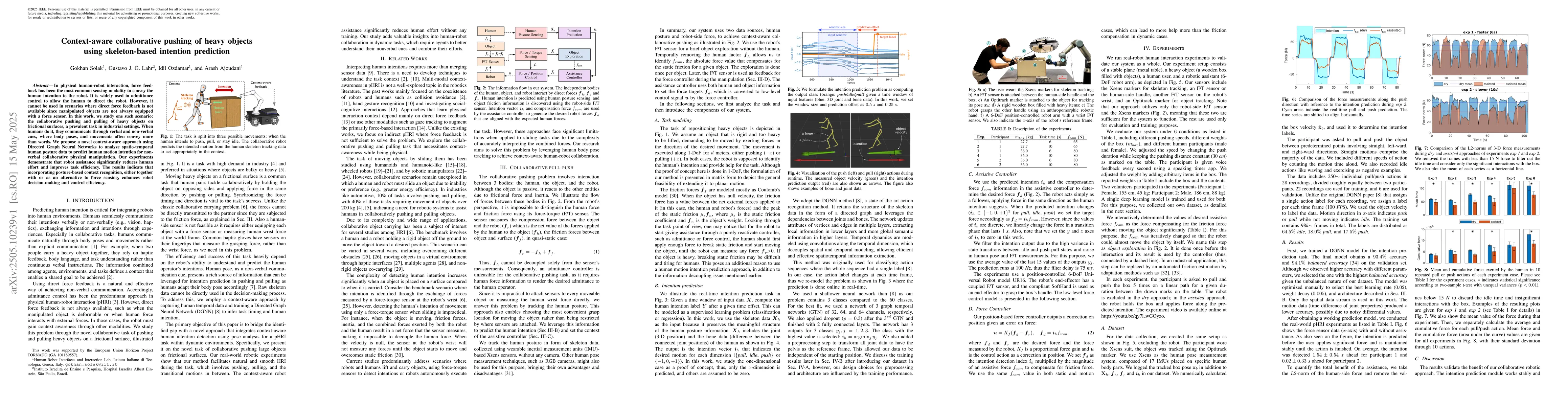 This research distinguishes itself by focusing on non-verbal cues, specifically body poses and movements, for intention prediction in collaborative pushing tasks, offering an alternative to traditional force-based methods.