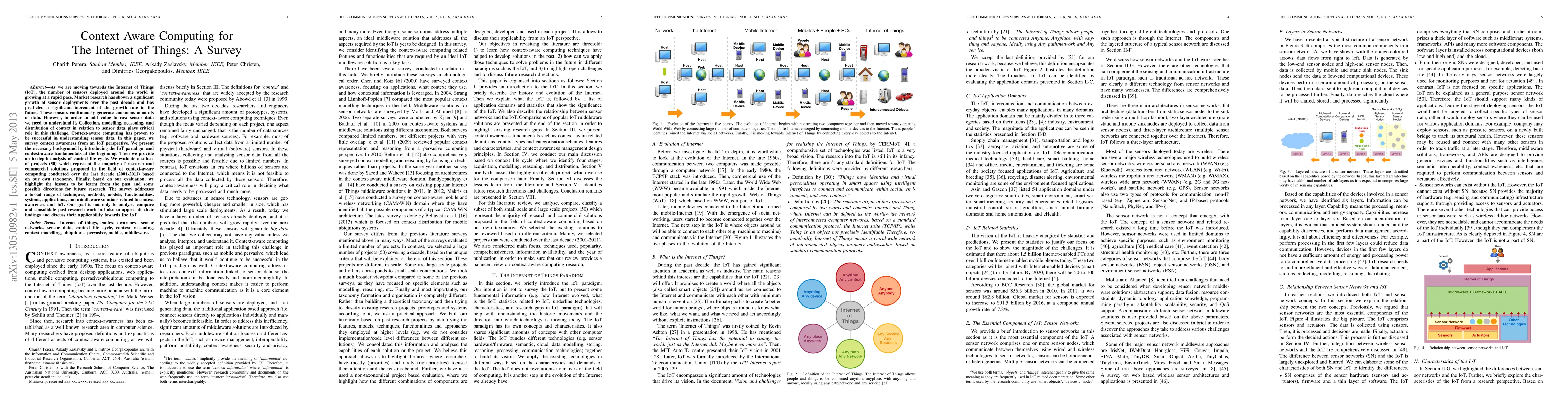 This paper surveys context-aware computing in the Internet of Things (IoT), analyzing techniques and methods from 2001-2011 to understand sensor data. It evaluates 50 representative projects and discusses lessons learned and future research directions.
