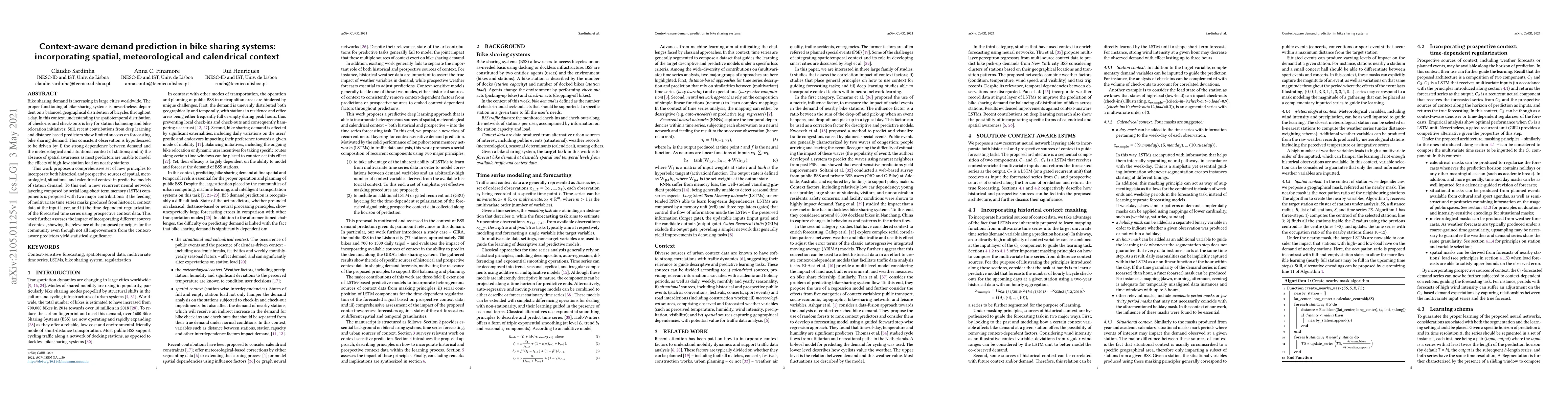 Bike sharing demand is increasing in large cities worldwide. The proper functioning of bike-sharing systems is, nevertheless, dependent on a balanced geographical distribution of bicycles throughout a day. In this context, understanding the spatiotemporal distribution of check-ins and check-outs is key for station balancing and bike relocation initiatives. Still, recent contributions from deep learning and distance-based predictors show limited success on forecasting bike sharing demand. This consistent observation is hypothesized to be driven by: i) the strong dependence between demand and the meteorological and situational context of stations; and ii) the absence of spatial awareness as most predictors are unable to model the effects of high-low station load on nearby stations. This work proposes a comprehensive set of new principles to incorporate both historical and prospective sources of spatial, meteorological, situational and calendrical context in predictive models of station demand. To this end, a new recurrent neural network layering composed by serial long-short term memory (LSTM) components is proposed with two major contributions: i) the feeding of multivariate time series masks produced from historical context data at the input layer, and ii) the time-dependent regularization of the forecasted time series using prospective context data. This work further assesses the impact of incorporating different sources of context, showing the relevance of the proposed principles for the community even though not all improvements from the context-aware predictors yield statistical significance.