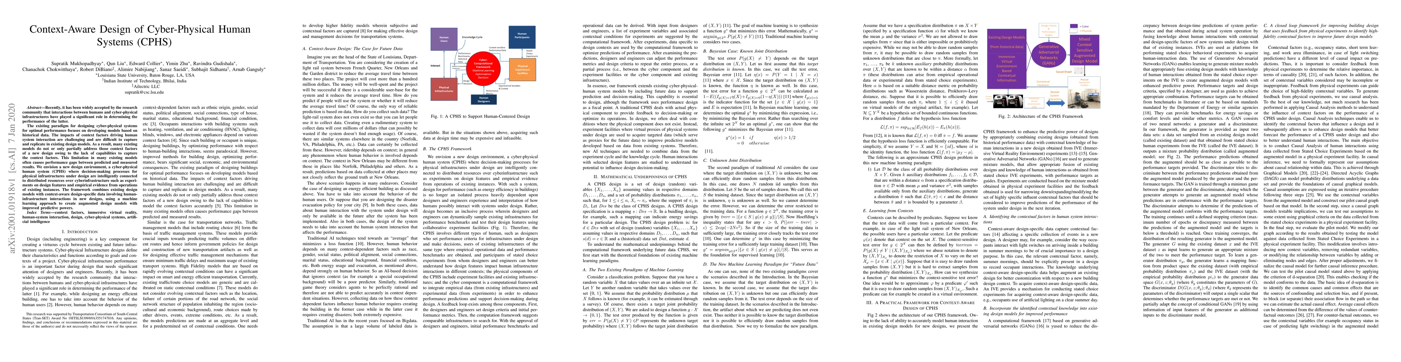 Recently, it has been widely accepted by the research community that interactions between humans and cyber-physical infrastructures have played a significant role in determining the performance of the latter. The existing paradigm for designing cyber-physical systems for optimal performance focuses on developing models based on historical data. The impacts of context factors driving human system interaction are challenging and are difficult to capture and replicate in existing design models. As a result, many existing models do not or only partially address those context factors of a new design owing to the lack of capabilities to capture the context factors. This limitation in many existing models often causes performance gaps between predicted and measured results. We envision a new design environment, a cyber-physical human system (CPHS) where decision-making processes for physical infrastructures under design are intelligently connected to distributed resources over cyberinfrastructure such as experiments on design features and empirical evidence from operations of existing instances. The framework combines existing design models with context-aware design-specific data involving human-infrastructure interactions in new designs, using a machine learning approach to create augmented design models with improved predictive powers.