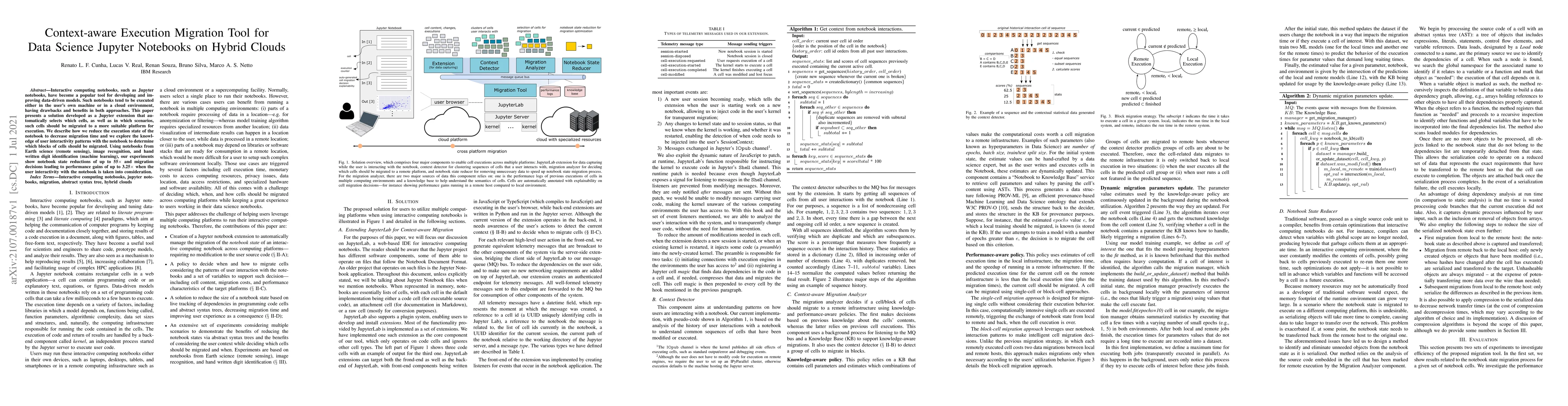 This paper introduces a Jupyter extension that automates the migration of notebook cells to hybrid cloud environments based on context-aware execution, optimizing performance by reducing notebook state and leveraging user interactivity patterns. Experiments demonstrate significant reductions in migration time and performance gains up to 3.25x.