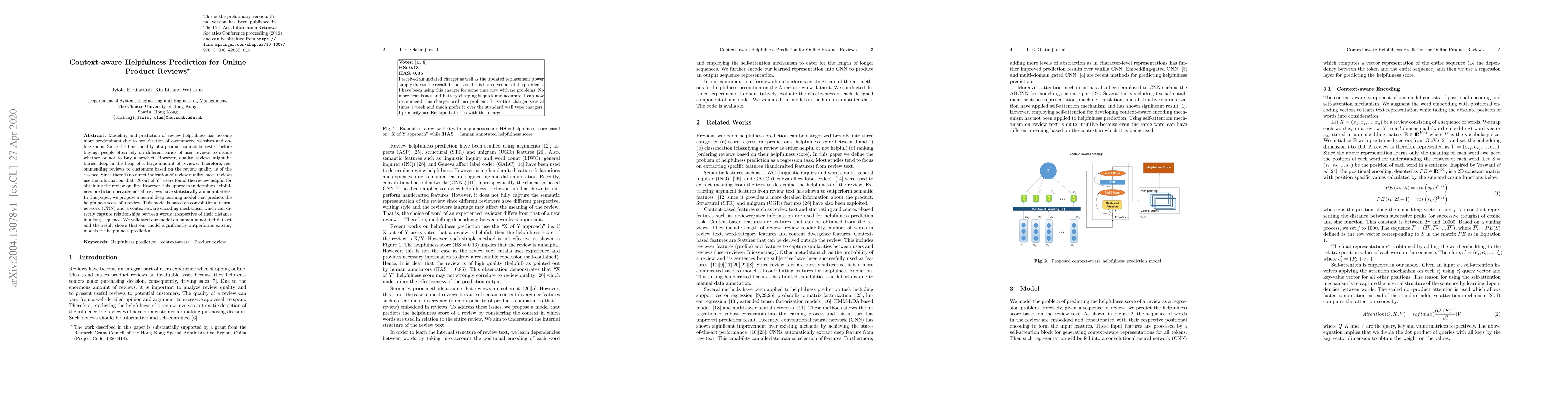 This paper proposes a neural deep learning model using a convolutional neural network (CNN) and context-aware encoding to predict the helpfulness of online product reviews. The model outperforms existing methods, addressing the issue of reviews lacking sufficient votes for helpfulness determination.