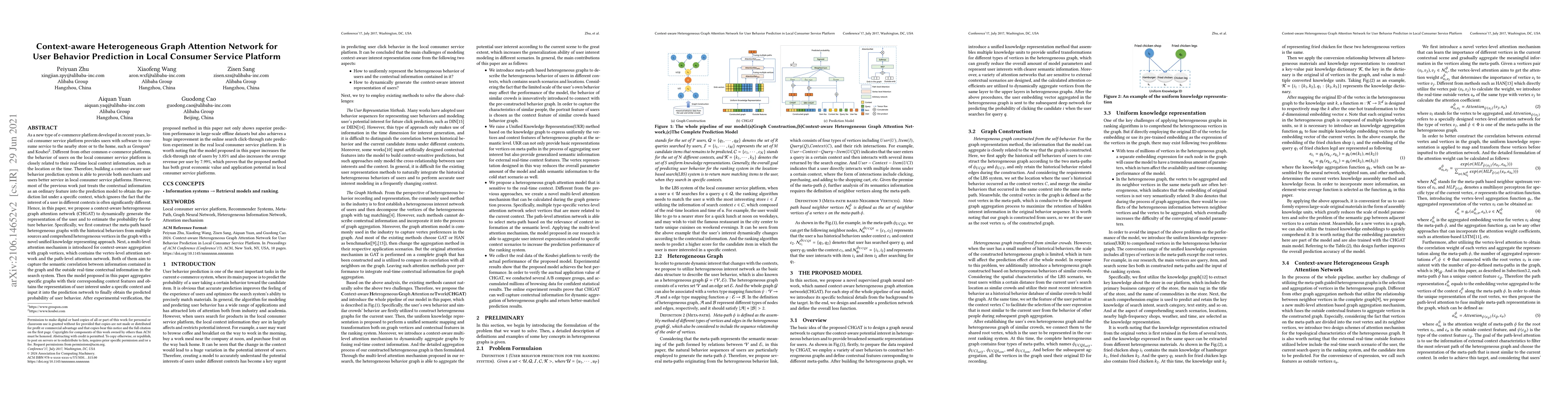 This paper proposes a Context-aware Heterogeneous Graph Attention Network (CHGAT) to predict user behavior in local consumer service platforms, leveraging real-time contextual information and heterogeneous graph structures.