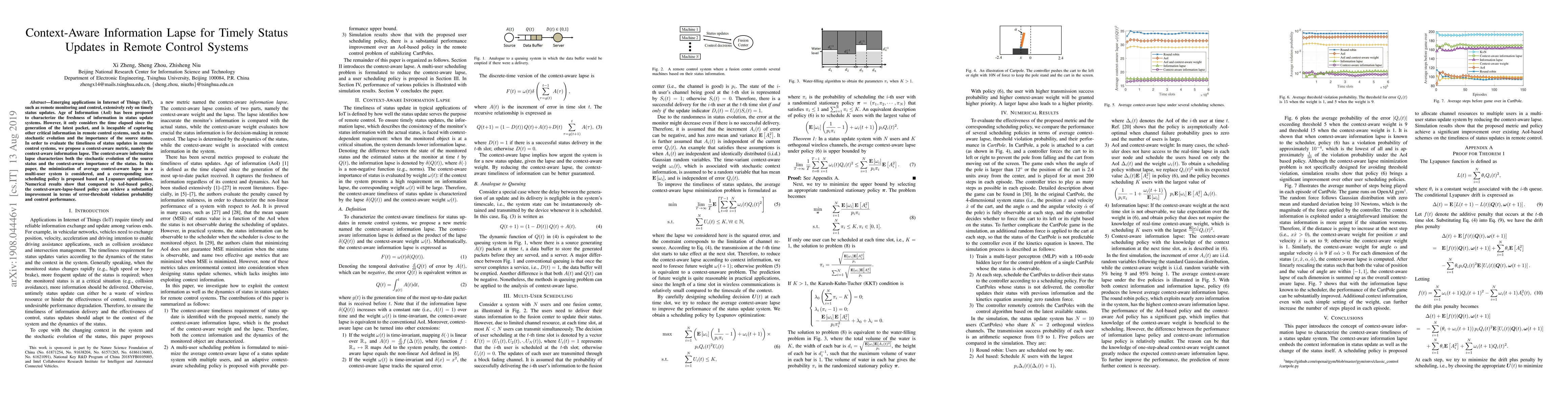 Emerging applications in Internet of Things (IoT), such as remote monitoring and control, extensively rely on timely status updates. Age of Information (AoI) has been proposed to characterize the freshness of information in status update systems. However, it only considers the time elapsed since the generation of the latest packet, and is incapable of capturing other critical information in remote control systems, such as the stochastic evolution and the importance of the source status. In order to evaluate the timeliness of status updates in remote control systems, we propose a context-aware metric, namely the context-aware information lapse. The context-aware information lapse characterizes both the stochastic evolution of the source status and the context-aware importance of the status. In this paper, the minimization of average context-aware lapse in a multi-user system is considered, and a corresponding user scheduling policy is proposed based on Lyapunov optimization. Numerical results show that compared to AoI-based policy, the context-aware-lapse-based policy can achieve a substantial improvement in terms of error-threshold violation probability and control performance.