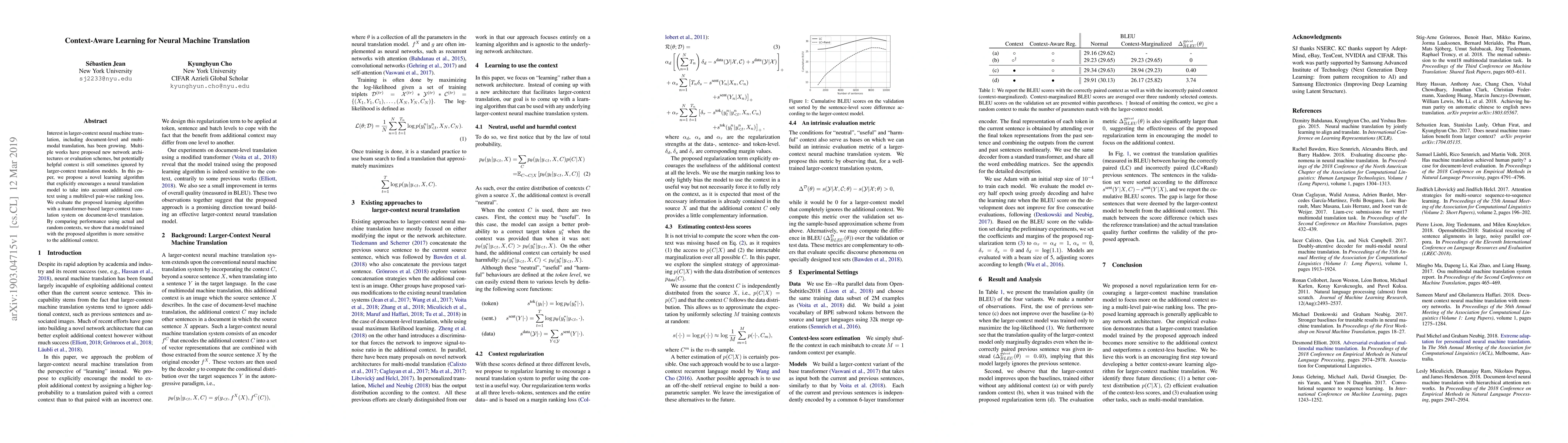 This paper introduces a new learning algorithm that enhances a transformer-based neural machine translation model to better utilize larger context, such as document-level information, using a multilevel pair-wise ranking loss. Experimental results demonstrate improved sensitivity to additional context compared to random contexts.