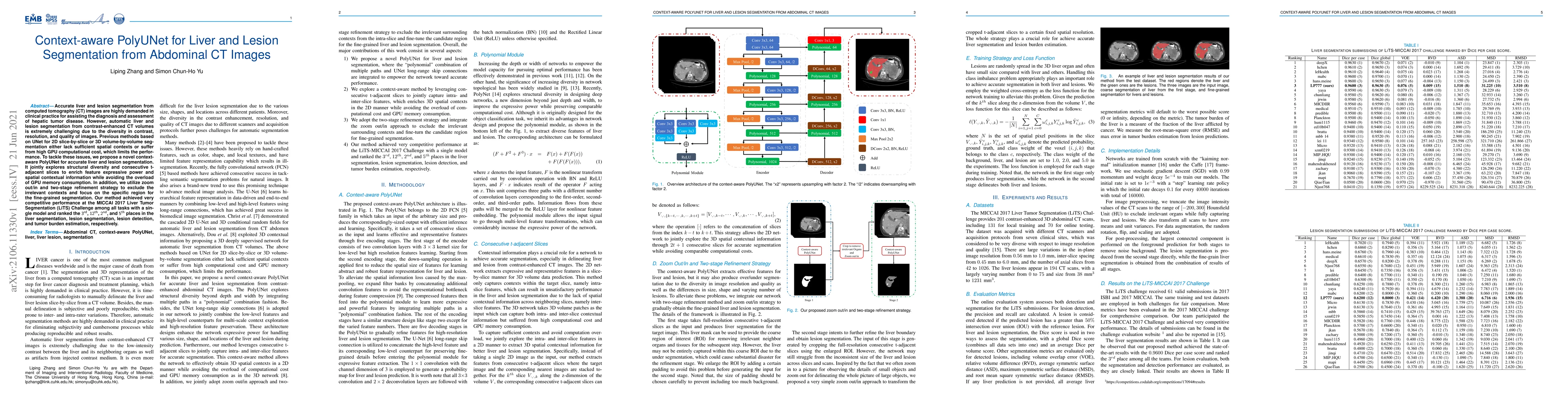 The paper proposes a context-aware PolyUNet for liver and lesion segmentation in abdominal CT images, addressing challenges in spatial context and computational cost. The method achieved competitive results in the MICCAI 2017 Liver Tumor Segmentation Challenge, ranking top in several tasks.