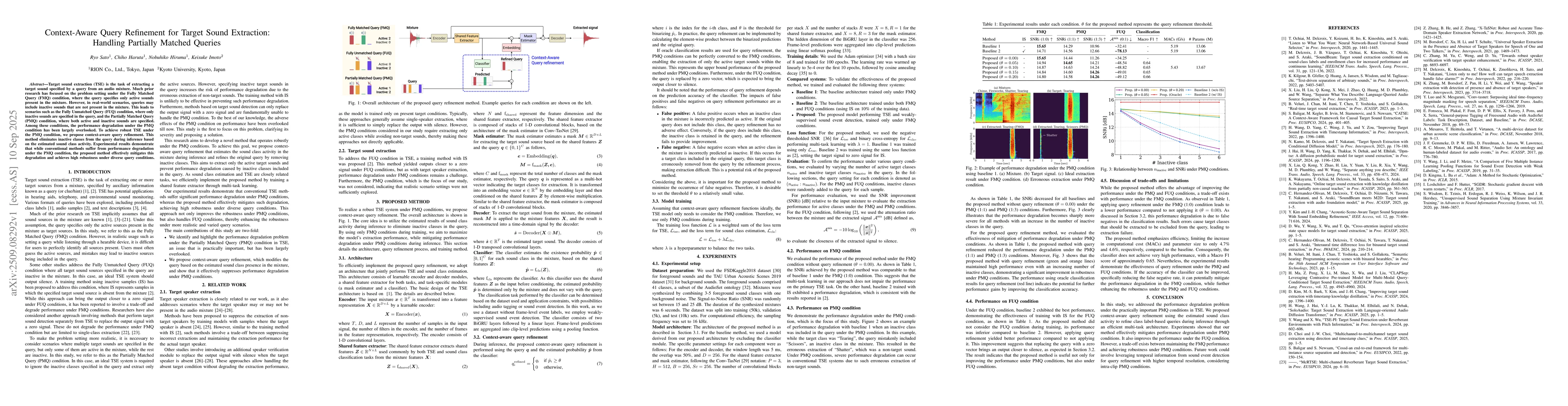 Target sound extraction (TSE) is the task of extracting a target sound specified by a query from an audio mixture. Much prior research has focused on the problem setting under the Fully Matched Query (FMQ) condition, where the query specifies only active sounds present in the mixture. However, in real-world scenarios, queries may include inactive sounds that are not present in the mixture. This leads to scenarios such as the Fully Unmatched Query (FUQ) condition, where only inactive sounds are specified in the query, and the Partially Matched Query (PMQ) condition, where both active and inactive sounds are specified. Among these conditions, the performance degradation under the PMQ condition has been largely overlooked. To achieve robust TSE under the PMQ condition, we propose context-aware query refinement. This method eliminates inactive classes from the query during inference based on the estimated sound class activity. Experimental results demonstrate that while conventional methods suffer from performance degradation under the PMQ condition, the proposed method effectively mitigates this degradation and achieves high robustness under diverse query conditions.