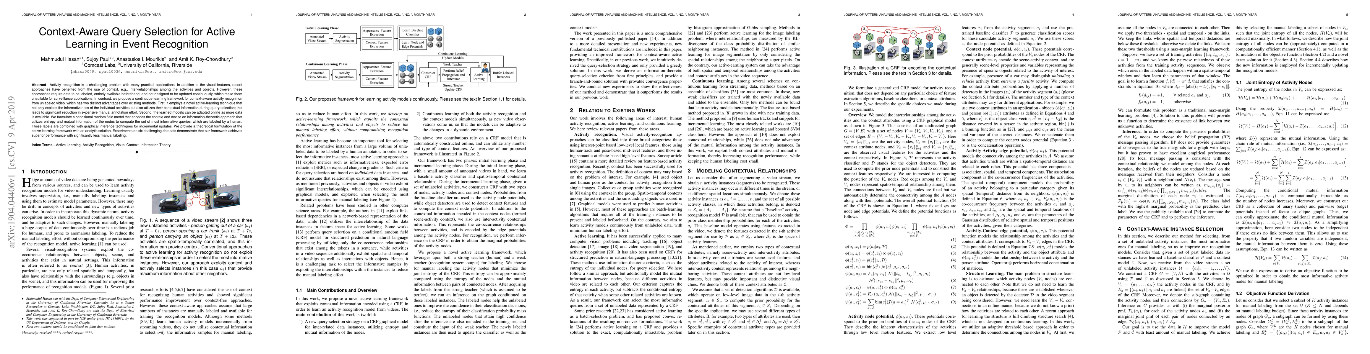 This paper proposes a continuous-learning framework for context-aware activity recognition from unlabeled video, utilizing an active-learning technique to reduce manual annotation effort. The framework adapts online and achieves superior performance with significantly less manual labeling, as demonstrated by experiments on six datasets.