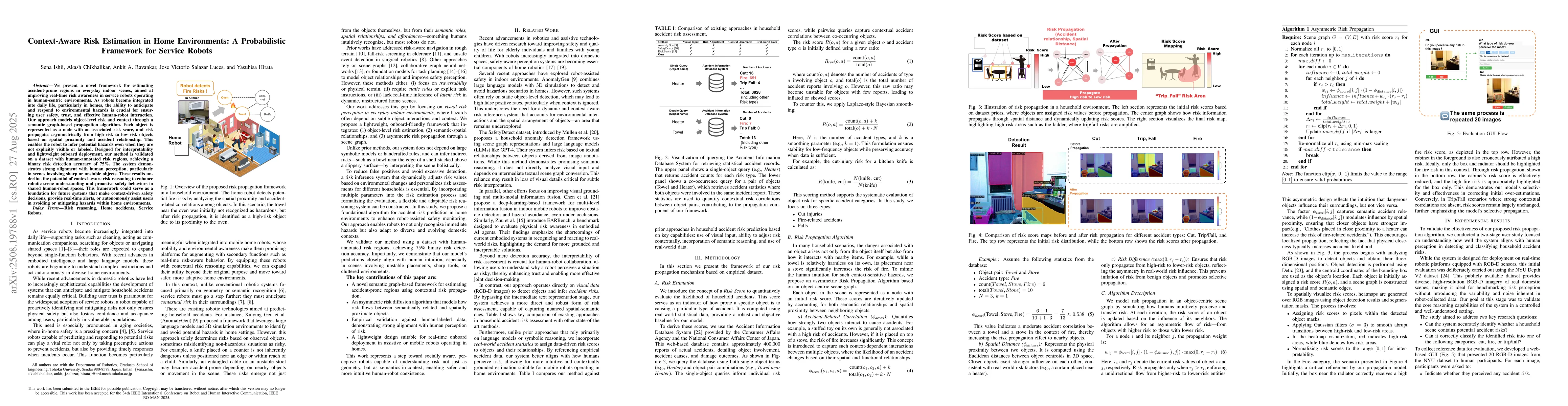 We present a novel framework for estimating accident-prone regions in everyday indoor scenes, aimed at improving real-time risk awareness in service robots operating in human-centric environments. As robots become integrated into daily life, particularly in homes, the ability to anticipate and respond to environmental hazards is crucial for ensuring user safety, trust, and effective human-robot interaction. Our approach models object-level risk and context through a semantic graph-based propagation algorithm. Each object is represented as a node with an associated risk score, and risk propagates asymmetrically from high-risk to low-risk objects based on spatial proximity and accident relationship. This enables the robot to infer potential hazards even when they are not explicitly visible or labeled. Designed for interpretability and lightweight onboard deployment, our method is validated on a dataset with human-annotated risk regions, achieving a binary risk detection accuracy of 75%. The system demonstrates strong alignment with human perception, particularly in scenes involving sharp or unstable objects. These results underline the potential of context-aware risk reasoning to enhance robotic scene understanding and proactive safety behaviors in shared human-robot spaces. This framework could serve as a foundation for future systems that make context-driven safety decisions, provide real-time alerts, or autonomously assist users in avoiding or mitigating hazards within home environments.