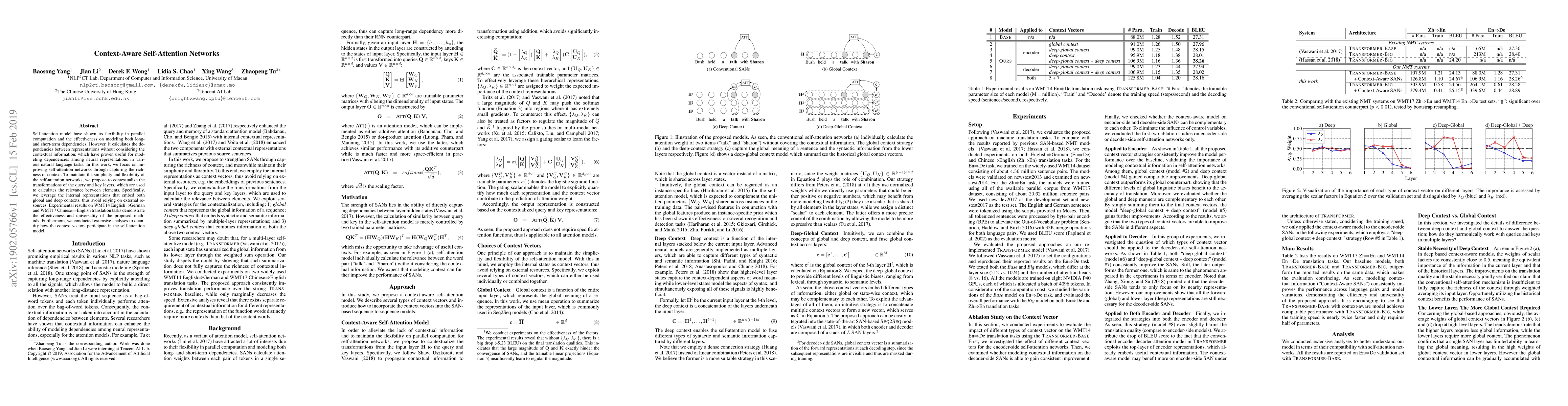 This paper proposes a new self-attention network design that incorporates contextual information to improve its ability to model long-term dependencies in natural language tasks. Experimental results show the effectiveness of this approach on translation tasks.