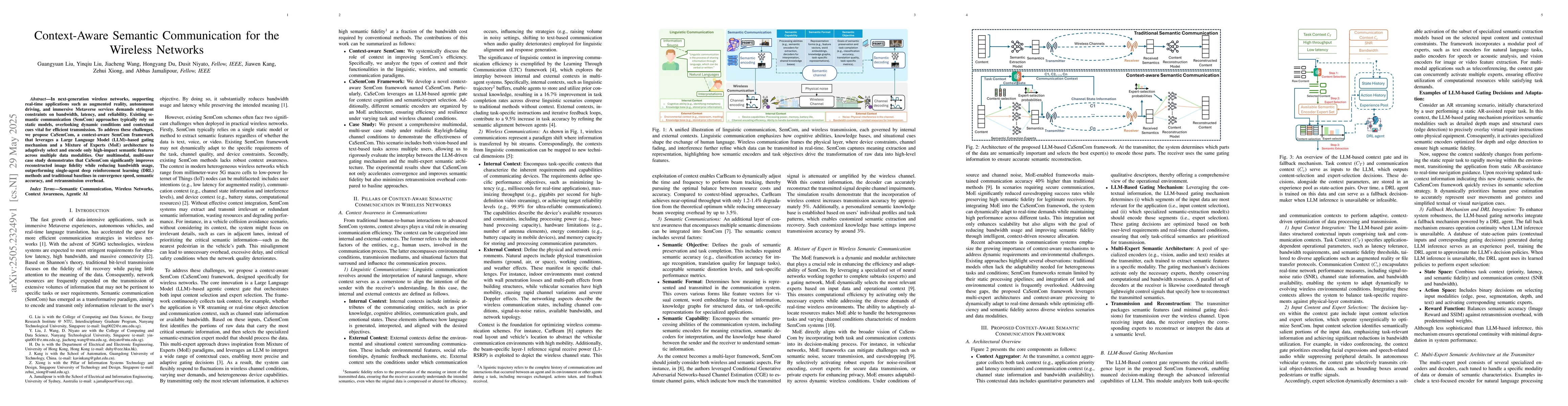 The research proposes CaSemCom, a context-aware semantic communication framework that uses a Large Language Model (LLM)-based gating mechanism and a Mixture of Experts (MoE) architecture to adaptively select and encode high-impact semantic features across multiple data modalities.
