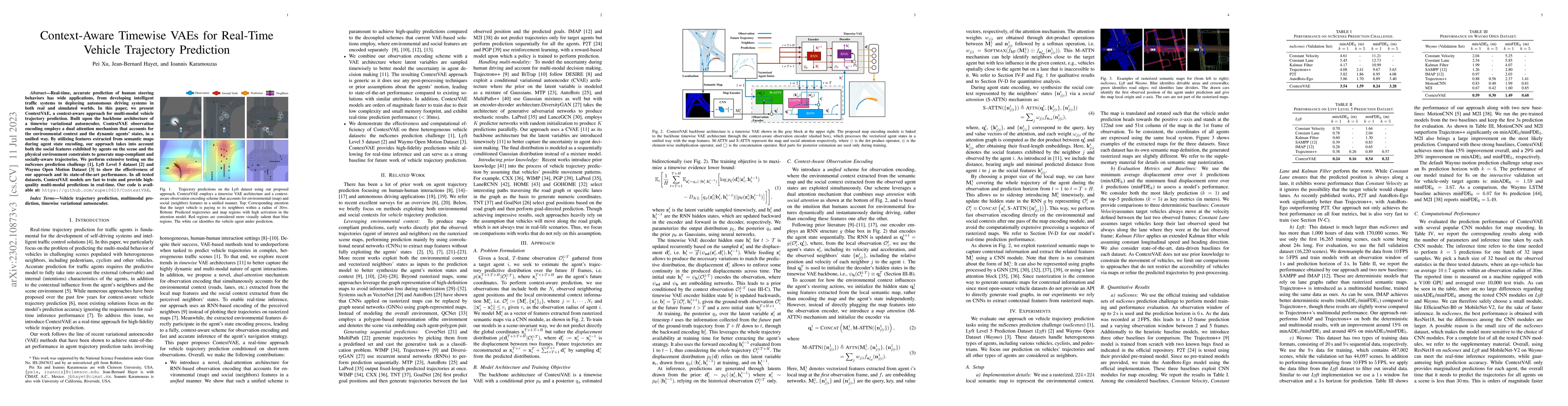 This paper introduces ContextVAE, a context-aware timewise variational autoencoder for real-time multi-modal vehicle trajectory prediction, leveraging dual attention mechanisms to incorporate environmental context and dynamic agent states. The model demonstrates state-of-the-art performance in real-time predictions across multiple datasets.