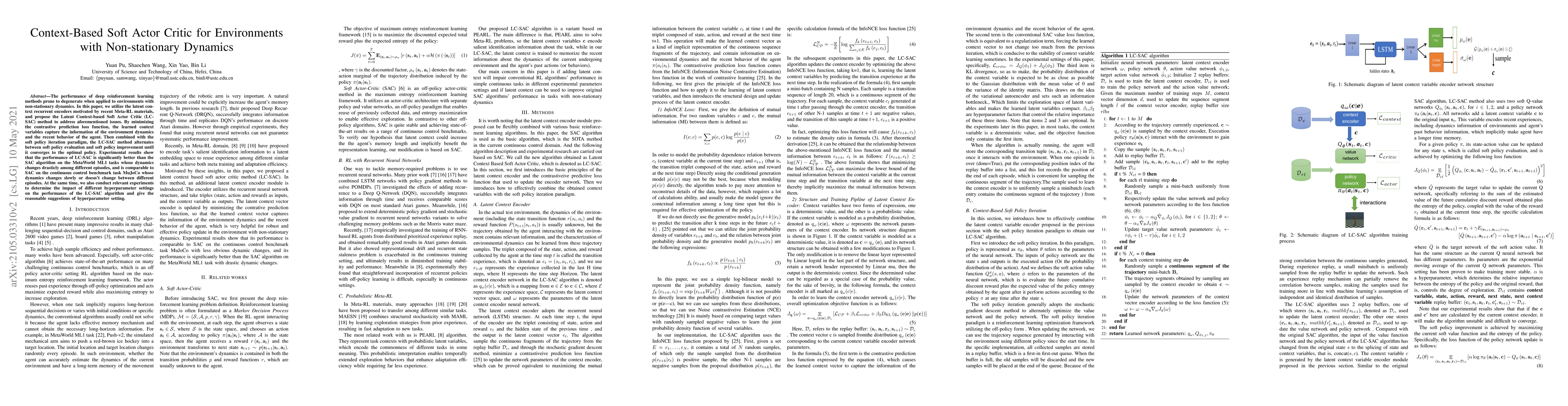 This paper proposes the Latent Context-based Soft Actor Critic (LC-SAC) method to enhance deep reinforcement learning in environments with non-stationary dynamics. It outperforms standard SAC on tasks with drastic dynamic changes, while maintaining comparable performance on more stable environments.