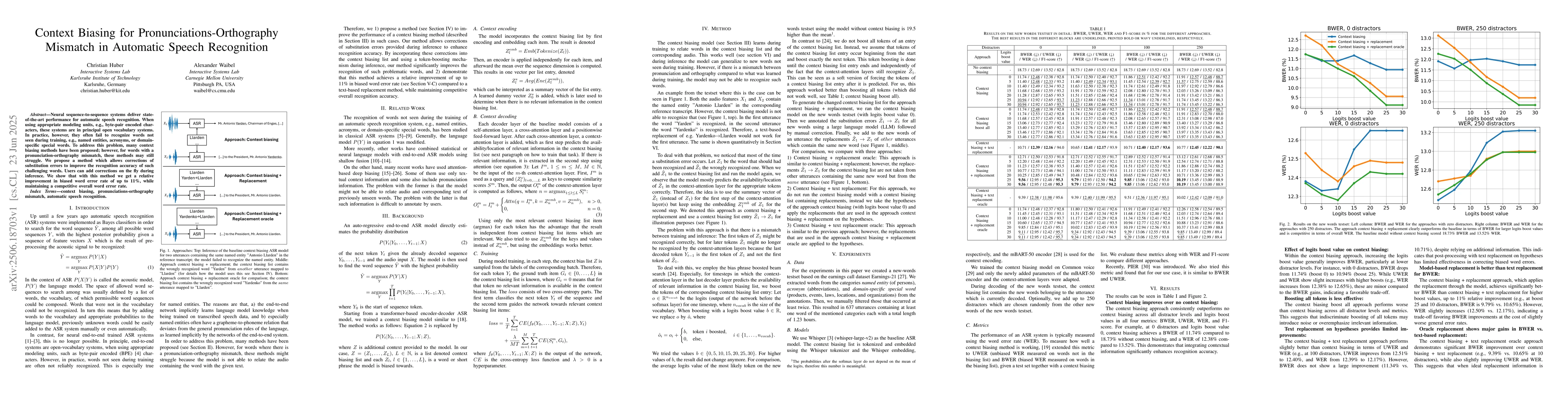 This research introduces a method to enhance the recognition of challenging words with pronunciation-orthography mismatches in automatic speech recognition systems. Users can correct substitution errors in real-time, resulting in a maximum 11% relative improvement in biased word error rate while preserving overall system performance.