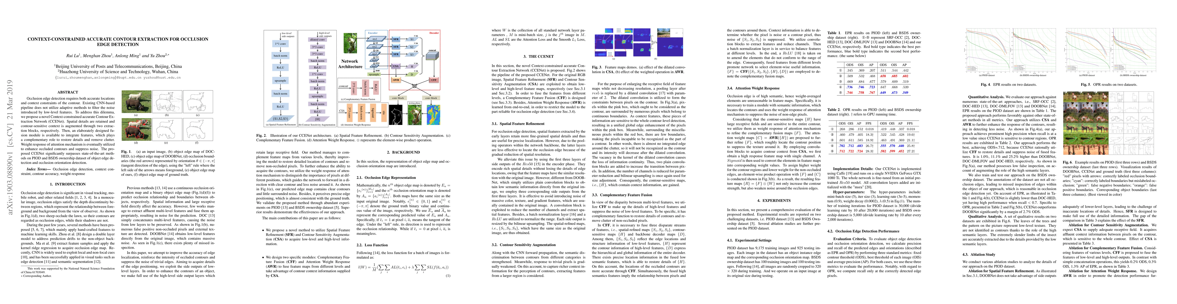 The paper proposes CCENet, a novel network for occlusion edge detection that combines spatial detail retention and contour-sensitive context augmentation to filter noise and enhance occluded contours. The method outperforms existing state-of-the-art techniques on edge detection datasets.