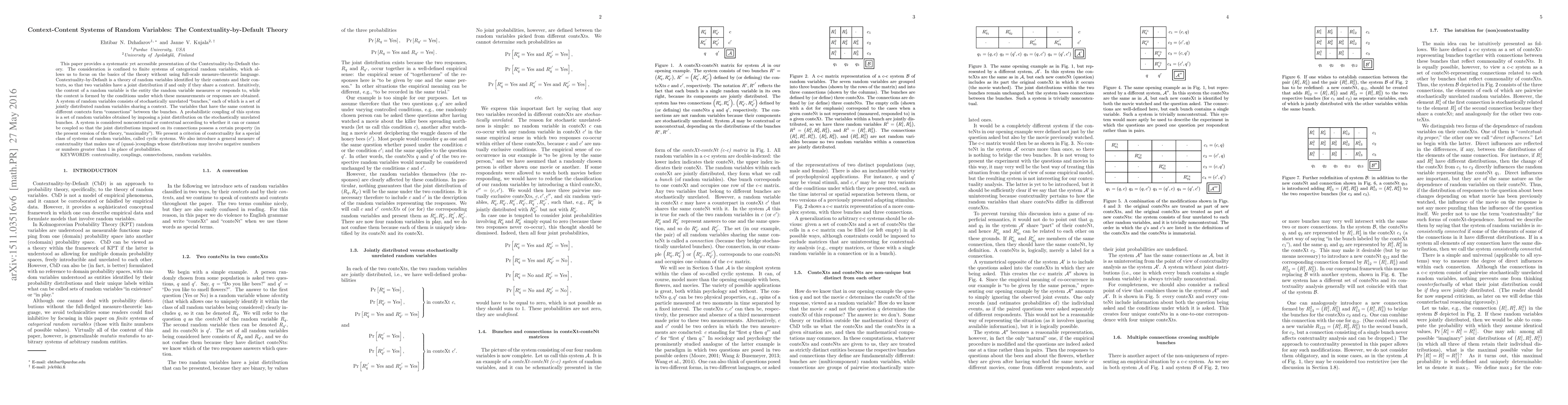 The research provides a systematic yet accessible presentation of Contextuality-by-Default theory, which can be applied to understand the nature of random variables in various contexts.