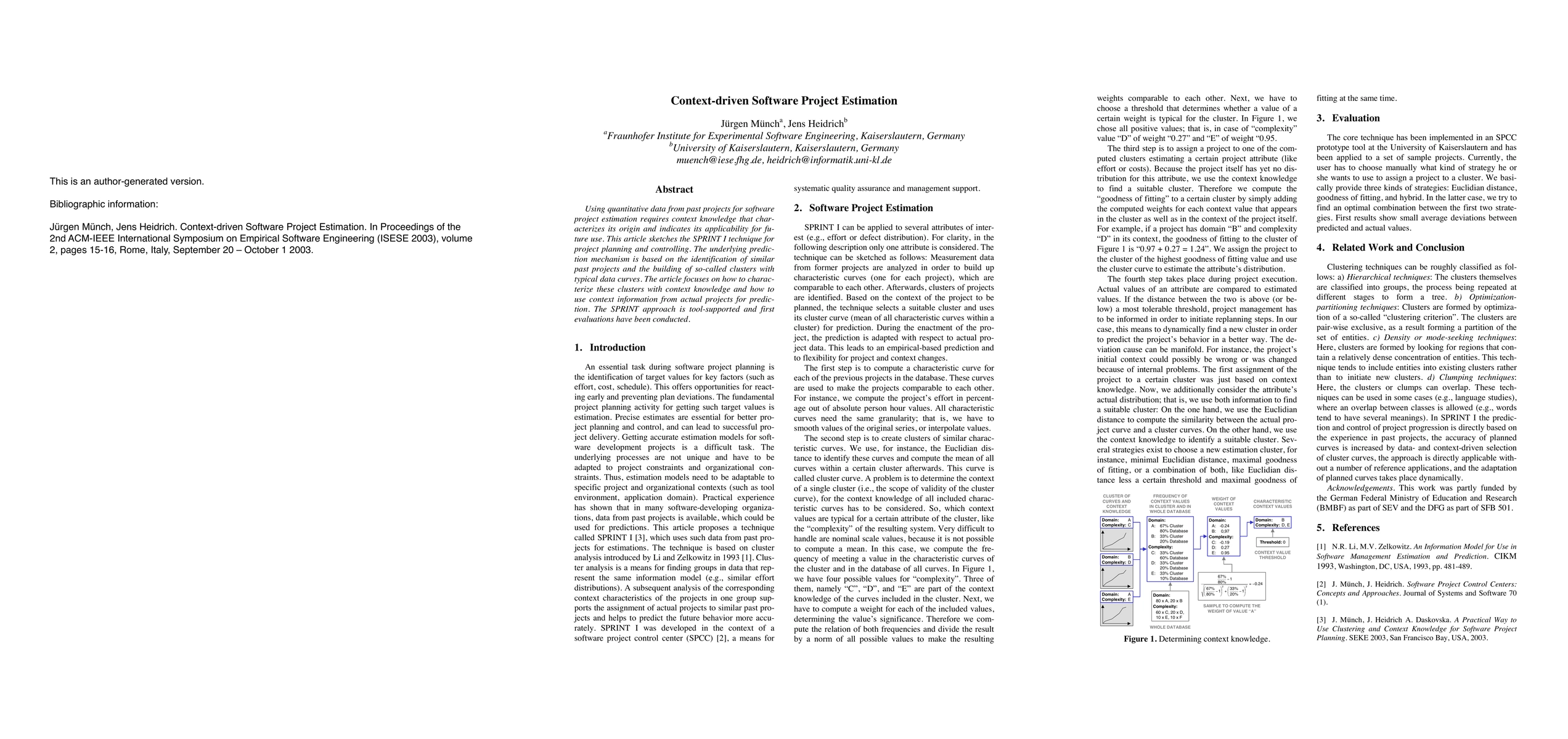 Using quantitative data from past projects for software project estimation requires context knowledge that characterizes its origin and indicates its applicability for future use. This article sketches the SPRINT I technique for project planning and controlling. The underlying prediction mechanism is based on the identification of similar past projects and the building of so-called clusters with typical data curves. The article focuses on how to characterize these clusters with context knowledge and how to use context information from actual projects for prediction. The SPRINT approach is tool-supported and first evaluations have been conducted.