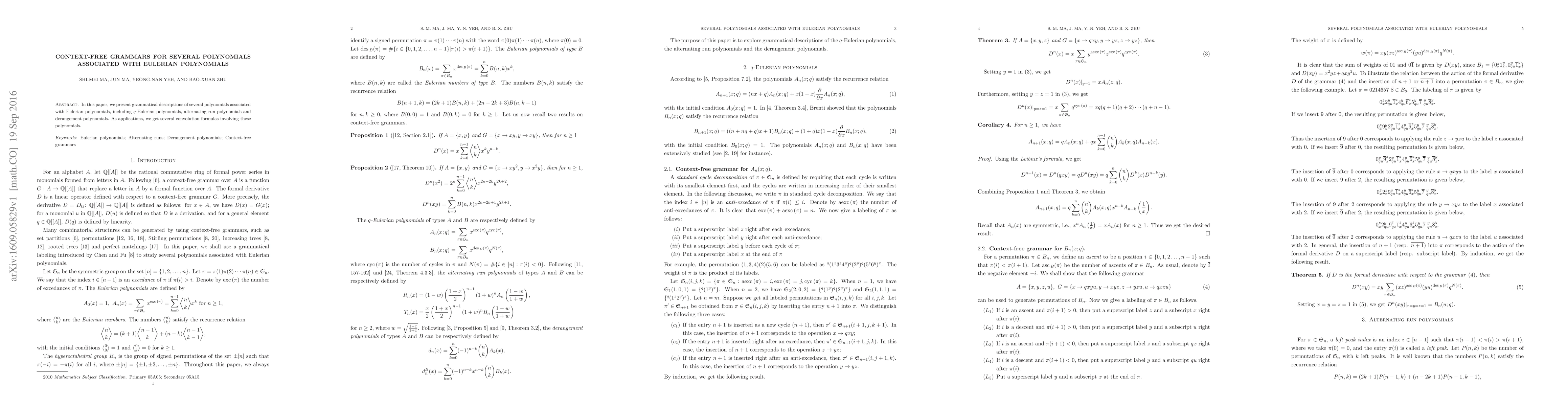 This paper provides context-free grammars for polynomials linked to Eulerian polynomials, such as q-Eulerian, alternating run, and derangement polynomials, and derives convolution formulas from these descriptions.