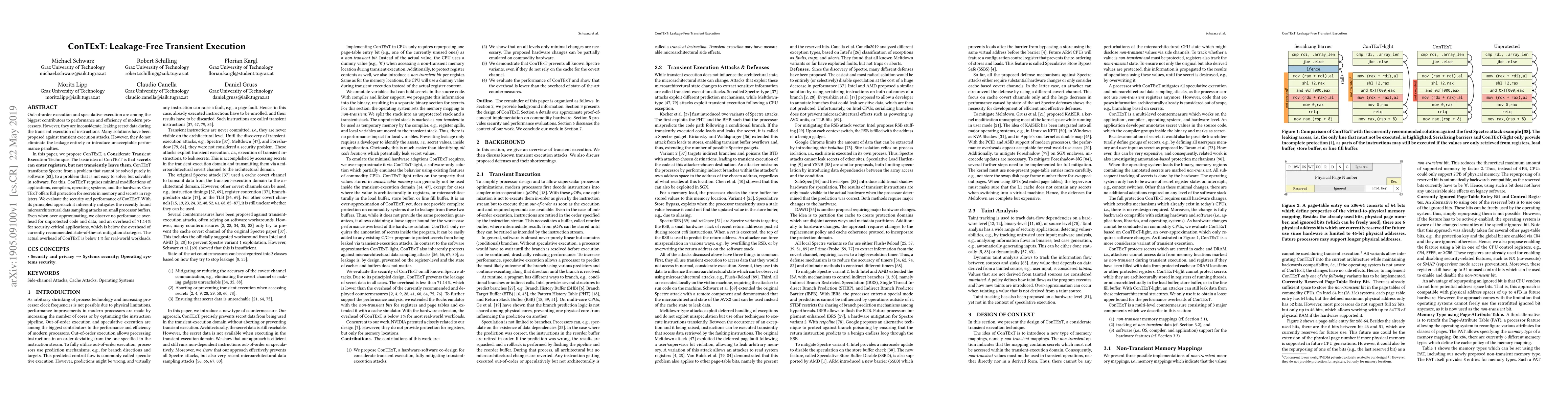Out-of-order execution and speculative execution are among the biggest contributors to performance and efficiency of modern processors. However, they are inconsiderate, leaking secret data during the transient execution of instructions. Many solutions have been proposed against transient execution attacks. However, they do not eliminate the leakage entirely or introduce unacceptable performance penalties. In this paper, we propose ConTExT, a Considerate Transient Execution Technique. The basic idea of ConTExT is that secrets can enter registers, but not transiently leave them. ConTExT transforms Spectre from a problem that cannot be solved purely in software [53], to a problem that is not easy to solve, but solvable in software. For this, ConTExT requires minimal modifications of applications, compilers, operating systems, and the hardware. ConTExT offers full protection for secrets in memory and secrets in registers. We evaluate the security and performance of ConTExT. With its principled approach it inherently mitigates the recently found microarchitectural data sampling attacks on small processor buffers. Even when over-approximating, we observe no performance overhead for unprotected code and data, and an overhead of 71.14% for security-critical applications, which is below the overhead of currently recommended state-of-the-art mitigation strategies. The actual overhead of ConTExT is below 1% for real-world workloads.