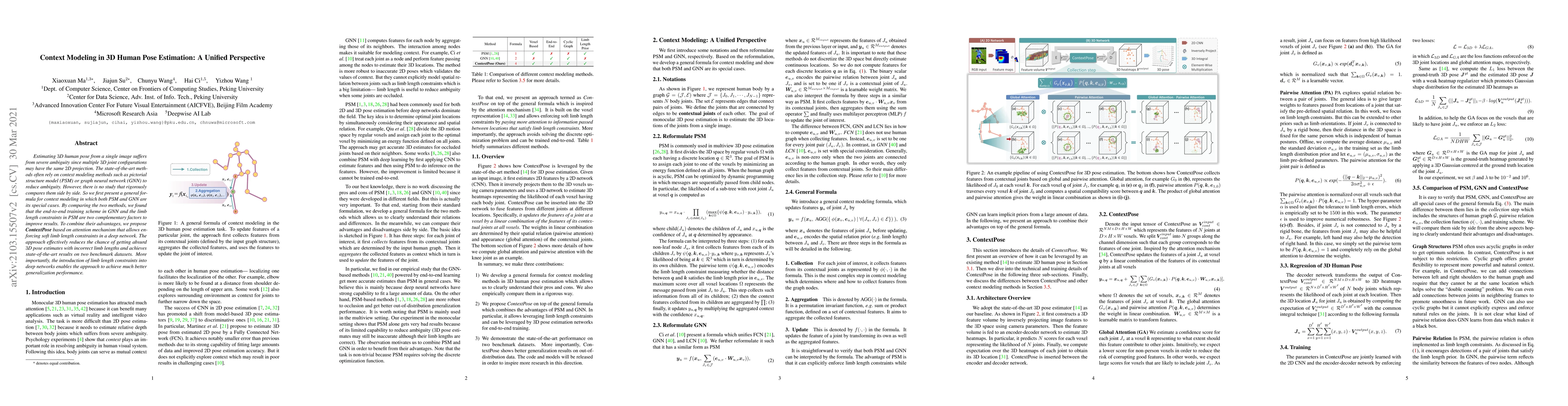 Estimating 3D human pose from a single image suffers from severe ambiguity since multiple 3D joint configurations may have the same 2D projection. The state-of-the-art methods often rely on context modeling methods such as pictorial structure model (PSM) or graph neural network (GNN) to reduce ambiguity. However, there is no study that rigorously compares them side by side. So we first present a general formula for context modeling in which both PSM and GNN are its special cases. By comparing the two methods, we found that the end-to-end training scheme in GNN and the limb length constraints in PSM are two complementary factors to improve results. To combine their advantages, we propose ContextPose based on attention mechanism that allows enforcing soft limb length constraints in a deep network. The approach effectively reduces the chance of getting absurd 3D pose estimates with incorrect limb lengths and achieves state-of-the-art results on two benchmark datasets. More importantly, the introduction of limb length constraints into deep networks enables the approach to achieve much better generalization performance.