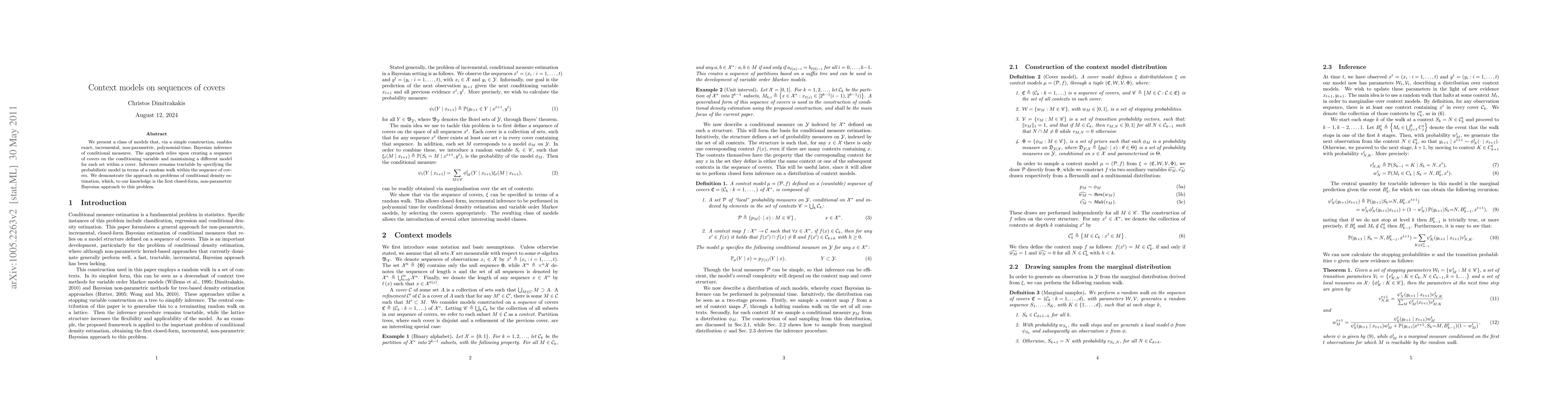 We present a class of models that, via a simple construction, enables exact, incremental, non-parametric, polynomial-time, Bayesian inference of conditional measures. The approach relies upon creating a sequence of covers on the conditioning variable and maintaining a different model for each set within a cover. Inference remains tractable by specifying the probabilistic model in terms of a random walk within the sequence of covers. We demonstrate the approach on problems of conditional density estimation, which, to our knowledge is the first closed-form, non-parametric Bayesian approach to this problem.