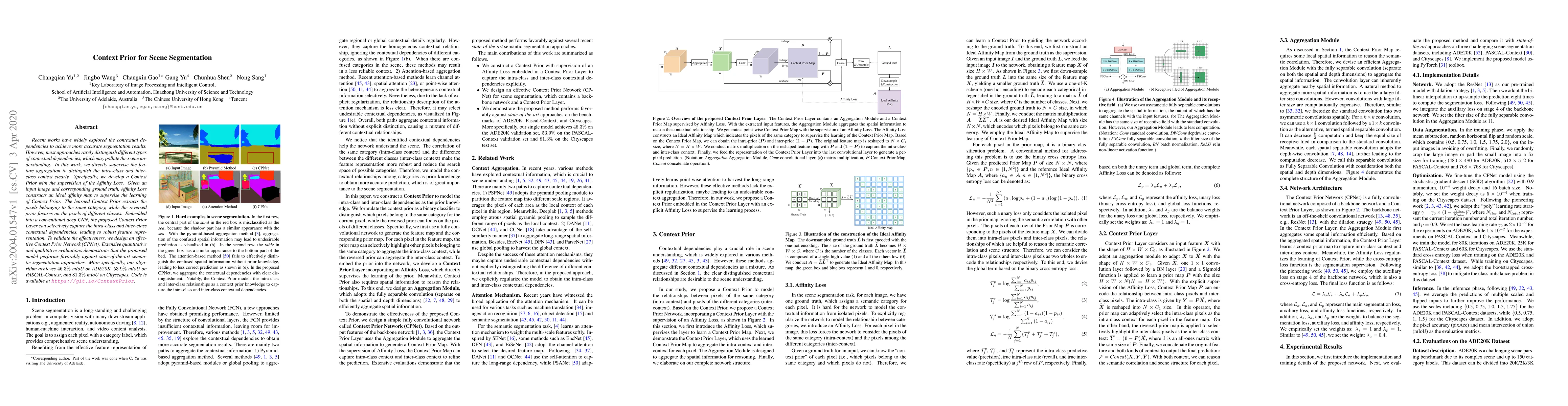Recent works have widely explored the contextual dependencies to achieve more accurate segmentation results. However, most approaches rarely distinguish different types of contextual dependencies, which may pollute the scene understanding. In this work, we directly supervise the feature aggregation to distinguish the intra-class and inter-class context clearly. Specifically, we develop a Context Prior with the supervision of the Affinity Loss. Given an input image and corresponding ground truth, Affinity Loss constructs an ideal affinity map to supervise the learning of Context Prior. The learned Context Prior extracts the pixels belonging to the same category, while the reversed prior focuses on the pixels of different classes. Embedded into a conventional deep CNN, the proposed Context Prior Layer can selectively capture the intra-class and inter-class contextual dependencies, leading to robust feature representation. To validate the effectiveness, we design an effective Context Prior Network (CPNet). Extensive quantitative and qualitative evaluations demonstrate that the proposed model performs favorably against state-of-the-art semantic segmentation approaches. More specifically, our algorithm achieves 46.3% mIoU on ADE20K, 53.9% mIoU on PASCAL-Context, and 81.3% mIoU on Cityscapes. Code is available at https://git.io/ContextPrior.