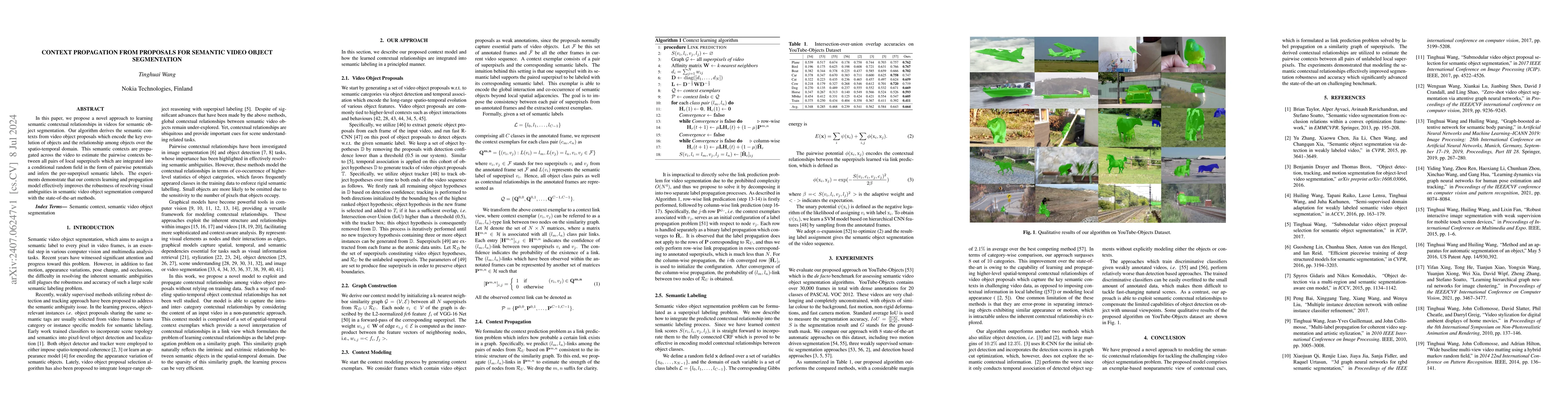 This paper introduces a new method to learn and propagate semantic contexts from video object proposals to improve semantic object segmentation. The approach estimates pairwise contexts between superpixels and integrates them into a conditional random field to resolve visual ambiguities, outperforming current state-of-the-art techniques.
