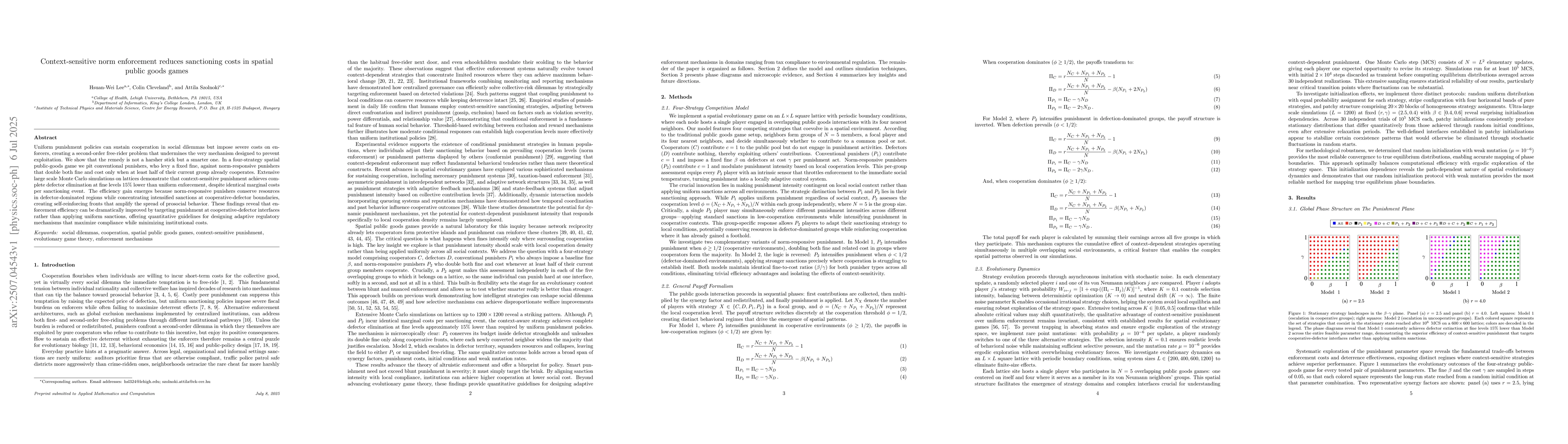 Uniform punishment policies can sustain cooperation in social dilemmas but impose severe costs on enforcers, creating a second-order free-rider problem that undermines the very mechanism designed to prevent exploitation. We show that the remedy is not a harsher stick but a smarter one. In a four-strategy spatial public-goods game we pit conventional punishers, who levy a fixed fine, against norm-responsive punishers that double both fine and cost only when at least half of their current group already cooperates. Extensive large scale Monte Carlo simulations on lattices demonstrate that context-sensitive punishment achieves complete defector elimination at fine levels 15\% lower than uniform enforcement, despite identical marginal costs per sanctioning event. The efficiency gain emerges because norm-responsive punishers conserve resources in defector-dominated regions while concentrating intensified sanctions at cooperative-defector boundaries, creating self-reinforcing fronts that amplify the spread of prosocial behavior. These findings reveal that enforcement efficiency can be dramatically improved by targeting punishment at cooperative-defector interfaces rather than applying uniform sanctions, offering quantitative guidelines for designing adaptive regulatory mechanisms that maximize compliance while minimizing institutional costs.