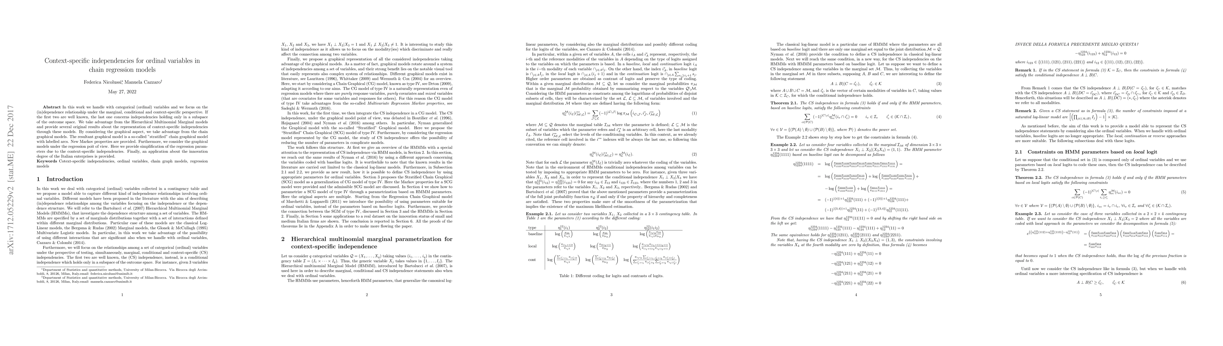 Researchers developed a new graphical model to analyze context-specific independencies in ordinal variables using chain regression models. They provided original results on representation, Markov properties, and simplification of regression parameters.
