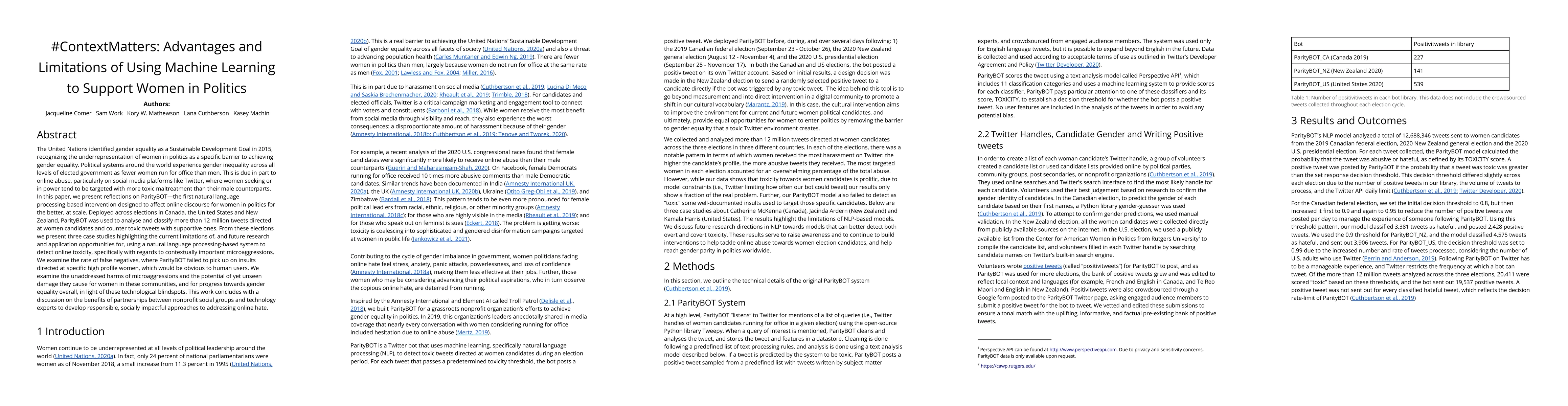 The United Nations identified gender equality as a Sustainable Development Goal in 2015, recognizing the underrepresentation of women in politics as a specific barrier to achieving gender equality. Political systems around the world experience gender inequality across all levels of elected government as fewer women run for office than men. This is due in part to online abuse, particularly on social media platforms like Twitter, where women seeking or in power tend to be targeted with more toxic maltreatment than their male counterparts. In this paper, we present reflections on ParityBOT - the first natural language processing-based intervention designed to affect online discourse for women in politics for the better, at scale. Deployed across elections in Canada, the United States and New Zealand, ParityBOT was used to analyse and classify more than 12 million tweets directed at women candidates and counter toxic tweets with supportive ones. From these elections we present three case studies highlighting the current limitations of, and future research and application opportunities for, using a natural language processing-based system to detect online toxicity, specifically with regards to contextually important microaggressions. We examine the rate of false negatives, where ParityBOT failed to pick up on insults directed at specific high profile women, which would be obvious to human users. We examine the unaddressed harms of microaggressions and the potential of yet unseen damage they cause for women in these communities, and for progress towards gender equality overall, in light of these technological blindspots. This work concludes with a discussion on the benefits of partnerships between nonprofit social groups and technology experts to develop responsible, socially impactful approaches to addressing online hate.