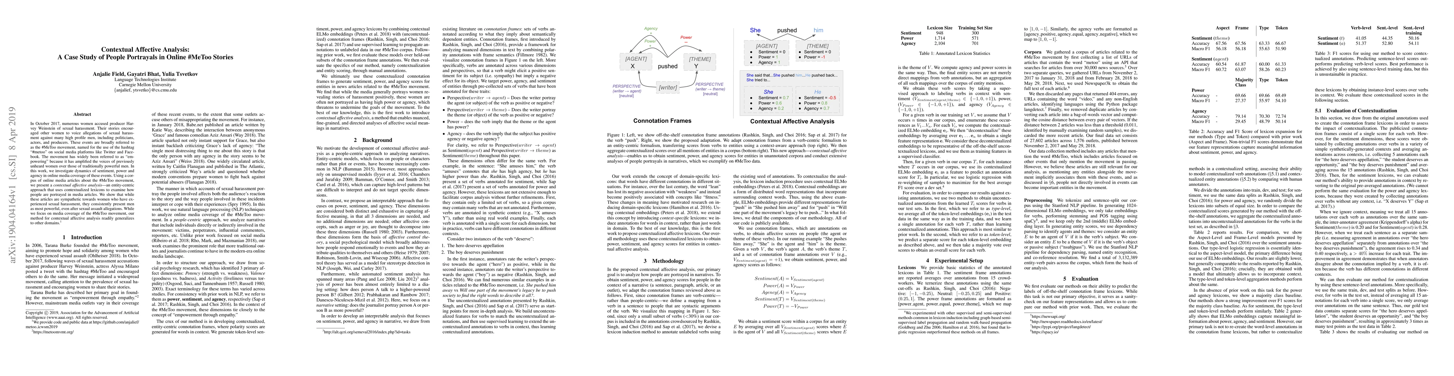 This paper conducts a contextual affective analysis of online media coverage of the #MeToo movement, revealing that while women are portrayed sympathetically, men are consistently depicted as powerful, even after sexual assault allegations. The study's method for analyzing sentiment and agency in media portrayals can be applied to other contexts.