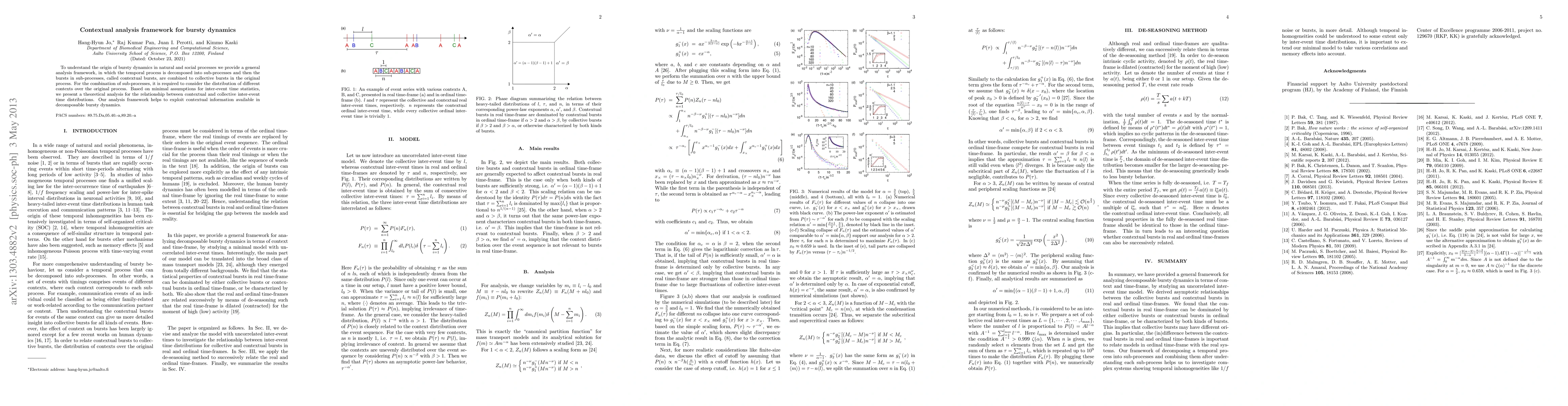 This paper introduces a framework for analyzing bursty dynamics in natural and social processes by decomposing temporal processes into sub-processes and combining contextual bursts into collective bursts. It provides a theoretical analysis of the relationship between contextual and collective inter-event time distributions, leveraging minimal assumptions about inter-event time statistics.