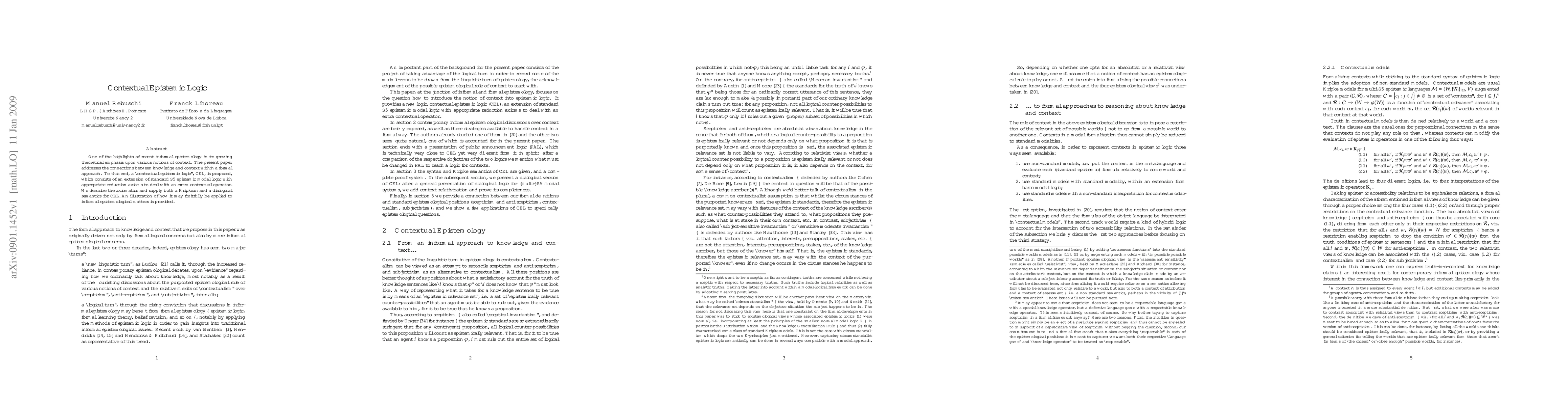 This paper proposes a "contextual epistemic logic" (CEL) to formalize the relationship between knowledge and context, extending standard S5 epistemic modal logic with reduction axioms for a contextual operator. It provides both Kripkean and dialogical semantics for CEL and demonstrates its application in informal epistemology.