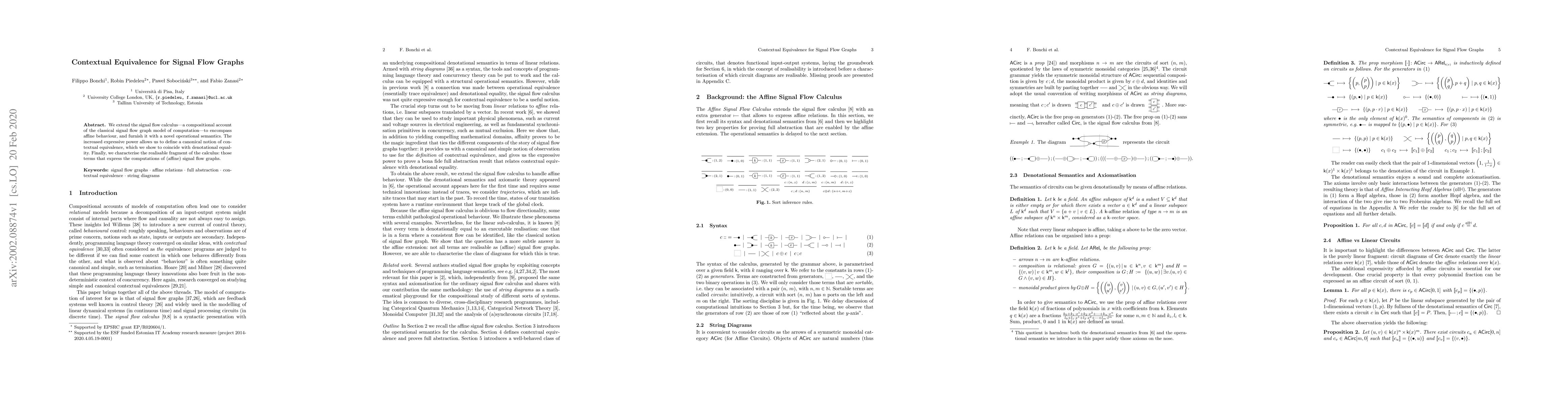 We extend the signal flow calculus---a compositional account of the classical signal flow graph model of computation---to encompass affine behaviour, and furnish it with a novel operational semantics. The increased expressive power allows us to define a canonical notion of contextual equivalence, which we show to coincide with denotational equality. Finally, we characterise the realisable fragment of the calculus: those terms that express the computations of (affine) signal flow graphs.