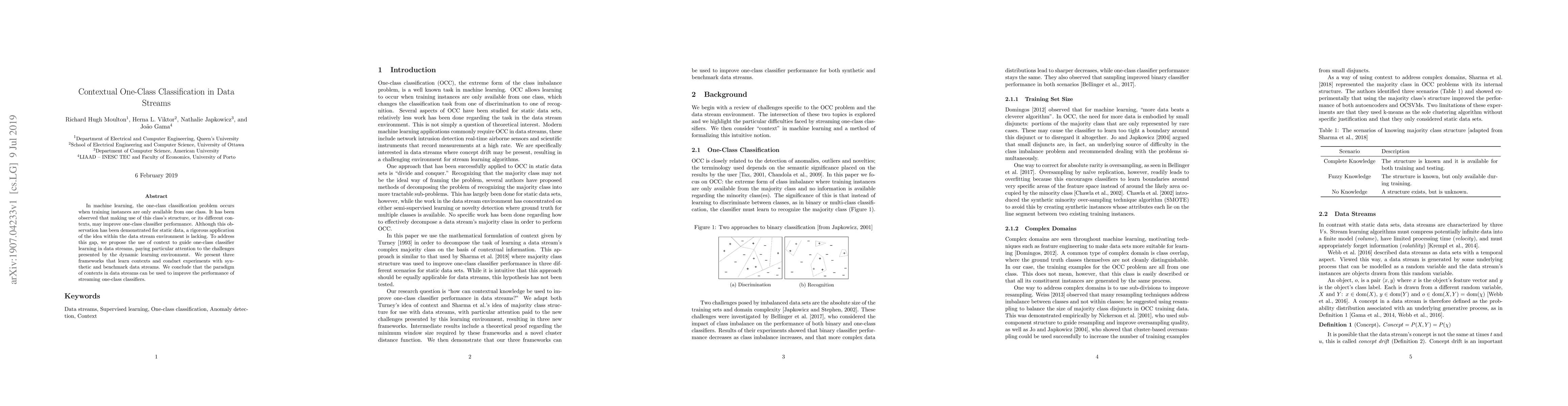 In machine learning, the one-class classification problem occurs when training instances are only available from one class. It has been observed that making use of this class's structure, or its different contexts, may improve one-class classifier performance. Although this observation has been demonstrated for static data, a rigorous application of the idea within the data stream environment is lacking. To address this gap, we propose the use of context to guide one-class classifier learning in data streams, paying particular attention to the challenges presented by the dynamic learning environment. We present three frameworks that learn contexts and conduct experiments with synthetic and benchmark data streams. We conclude that the paradigm of contexts in data streams can be used to improve the performance of streaming one-class classifiers.