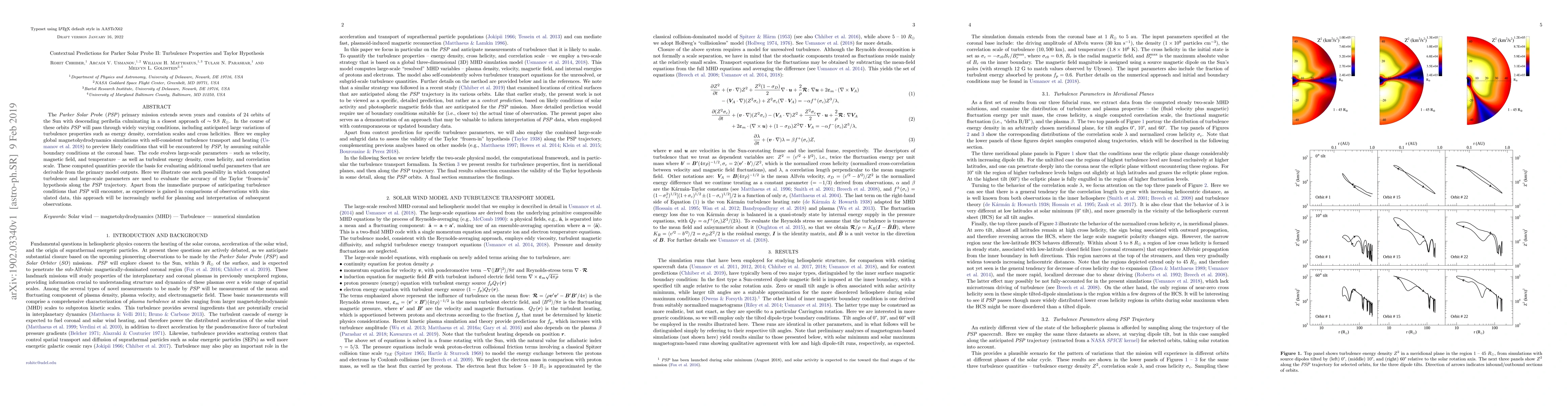 The Parker Solar Probe (PSP) primary mission extends seven years and consists of 24 orbits of the Sun with descending perihelia culminating in a closest approach of ($\sim 9.8~R_\odot$). In the course of these orbits PSP will pass through widely varying conditions, including anticipated large variations of turbulence properties such as energy density, correlation scales and cross helicities. Here we employ global magnetohydrodynamics simulations with self-consistent turbulence transport and heating \citep{usmanov2018} to preview likely conditions that will be encountered by PSP, by assuming suitable boundary conditions at the coronal base. The code evolves large-scale parameters -- such as velocity, magnetic field, and temperature -- as well as turbulent energy density, cross helicity, and correlation scale. These computed quantities provide the basis for evaluating additional useful parameters that are derivable from the primary model outputs. Here we illustrate one such possibility in which computed turbulence and large-scale parameters are used to evaluate the accuracy of the Taylor "frozen-in" hypothesis along the PSP trajectory. Apart from the immediate purpose of anticipating turbulence conditions that PSP will encounter, as experience is gained in comparisons of observations with simulated data, this approach will be increasingly useful for planning and interpretation of subsequent observations.