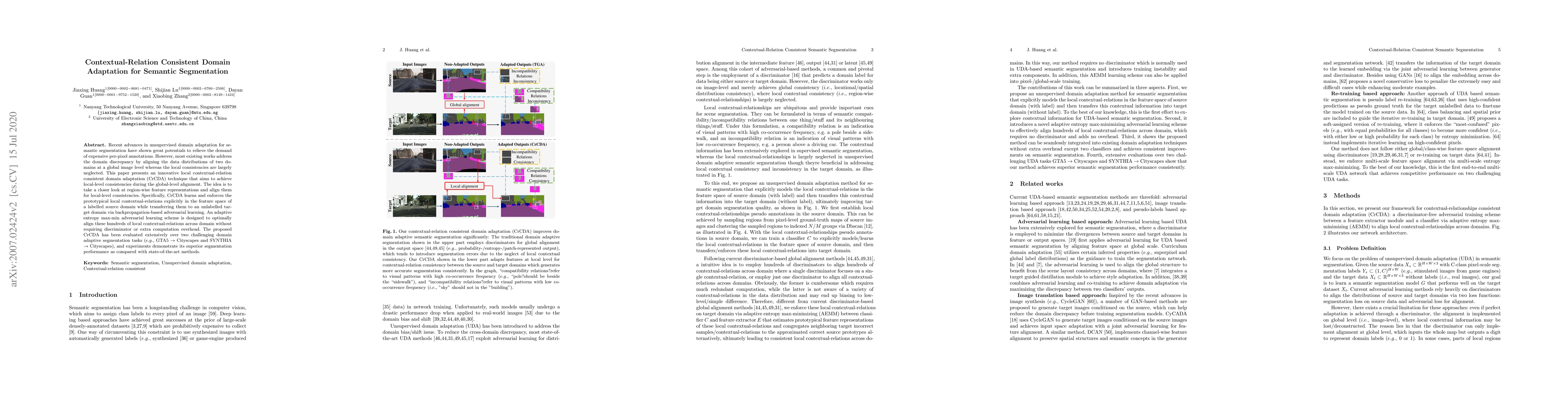Recent advances in unsupervised domain adaptation for semantic segmentation have shown great potentials to relieve the demand of expensive per-pixel annotations. However, most existing works address the domain discrepancy by aligning the data distributions of two domains at a global image level whereas the local consistencies are largely neglected. This paper presents an innovative local contextual-relation consistent domain adaptation (CrCDA) technique that aims to achieve local-level consistencies during the global-level alignment. The idea is to take a closer look at region-wise feature representations and align them for local-level consistencies. Specifically, CrCDA learns and enforces the prototypical local contextual-relations explicitly in the feature space of a labelled source domain while transferring them to an unlabelled target domain via backpropagation-based adversarial learning. An adaptive entropy max-min adversarial learning scheme is designed to optimally align these hundreds of local contextual-relations across domain without requiring discriminator or extra computation overhead. The proposed CrCDA has been evaluated extensively over two challenging domain adaptive segmentation tasks (e.g., GTA5 to Cityscapes and SYNTHIA to Cityscapes), and experiments demonstrate its superior segmentation performance as compared with state-of-the-art methods.